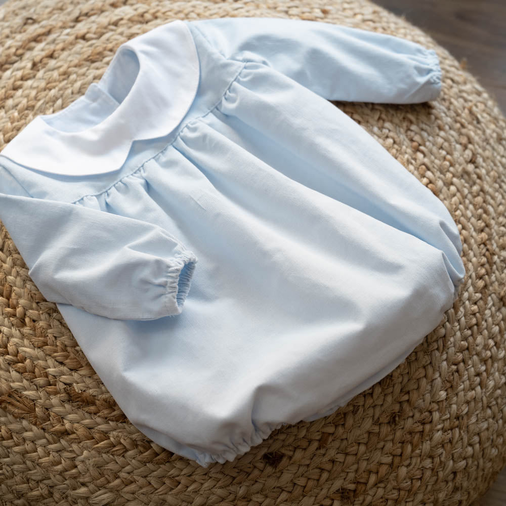 This adorable romper features long sleeves, a charming scalloped collar, and is fully lined for extra comfort. Made from high-quality 100% cotton corduroy, offering both style and practicality. Crafted with care in Portugal, ideal for stylish and comfortable wear.