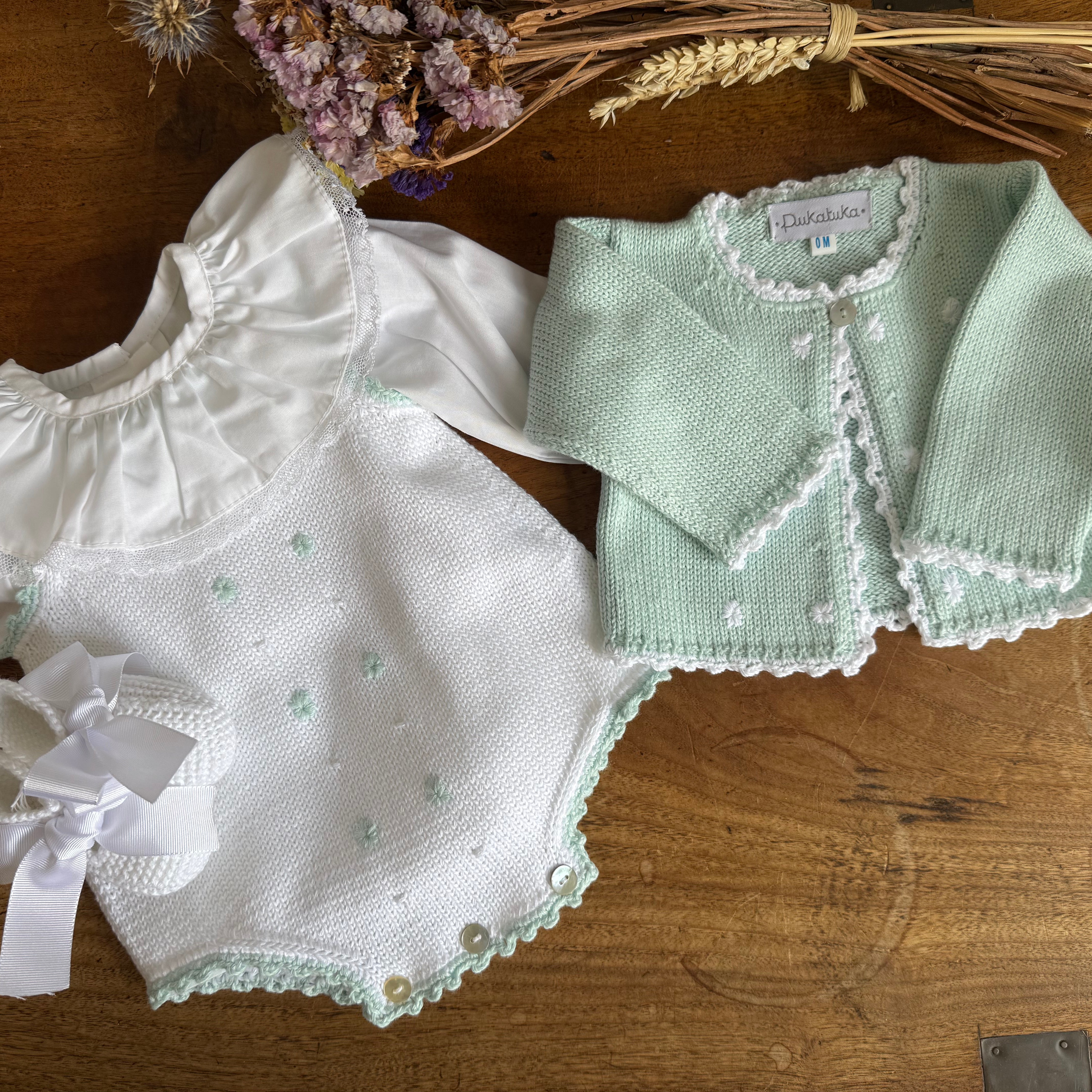 Made in Portugal from premium Italian yarn, this classic knit cardigan featuring delicate floral details on sleeves. Soft, hypoallergenic, and resistant to pilling, it’s the perfect addition to any baby´s wardrobe.