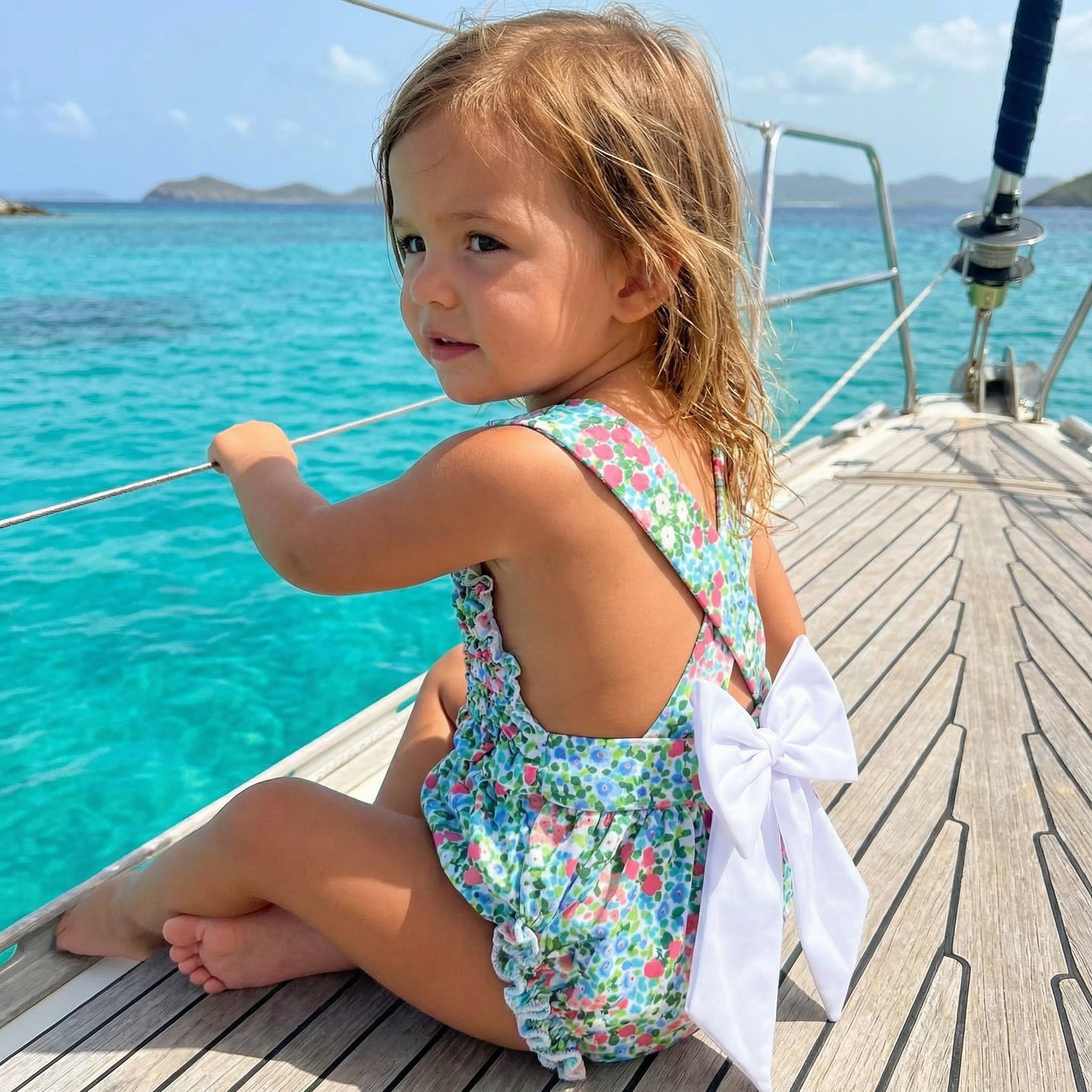 The "Frou Frou" baby lycra swimsuit is a timeless classic, blending the charm of a romper with the functionality of a swimsuit. Featuring elasticated details, crossed straps, and a bow at the back, it's as cute as it is practical. Available in a variety of delightful patterns