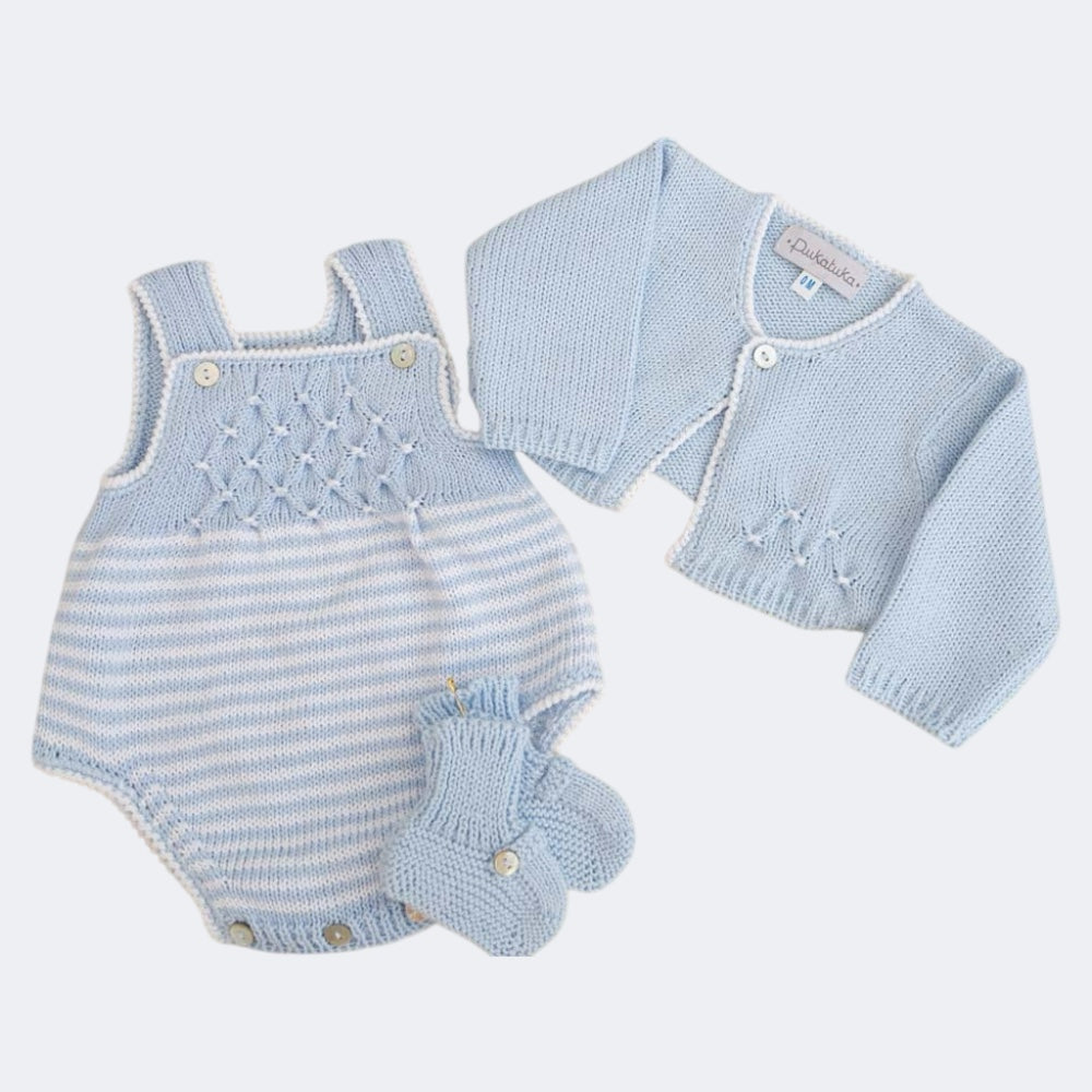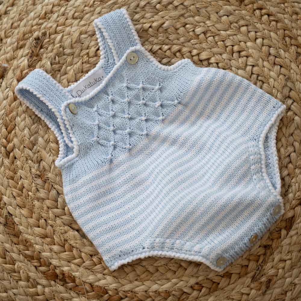 Blue Hand Smocked Knitted Romper with Stripes