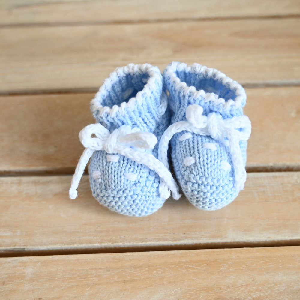 Charming and cozy, our Knitted Booties with Hand-Embroidered Dots are the perfect accessory for your little one. Each pair is delicately crafted with soft yarn and adorned with sweet, hand-embroidered dots, adding a special touch to these classic booties.