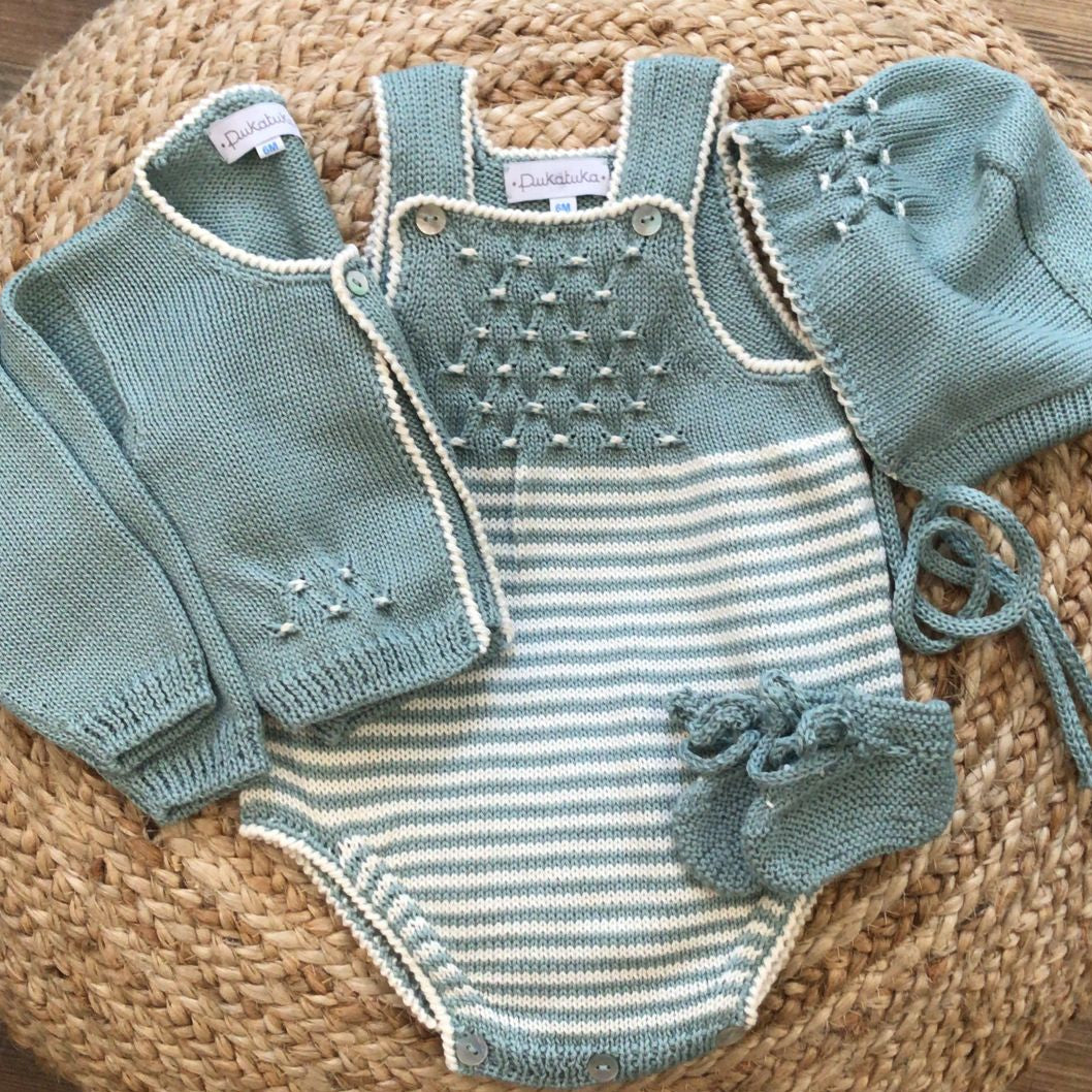 Knitted Cotton Romper with Hand-Embroidered Dots