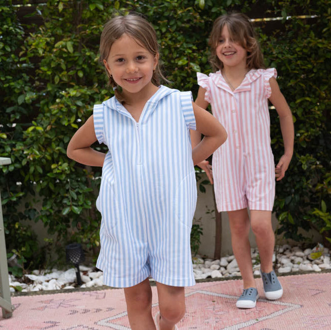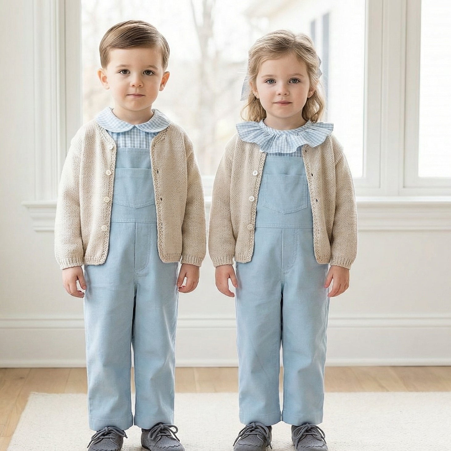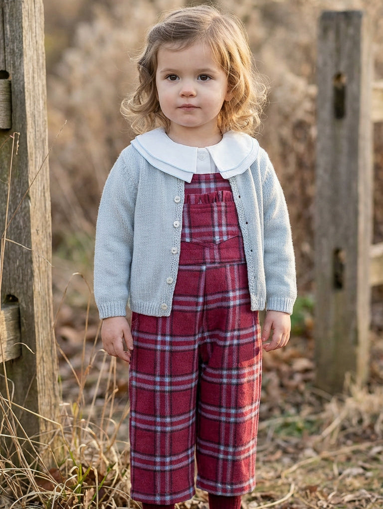 Girls Overalls with Gingham Pattern and Ruffled Shoulder Detail