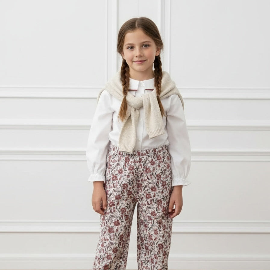 Girls Corduroy Pants with Back Pockets and Ruffled Details