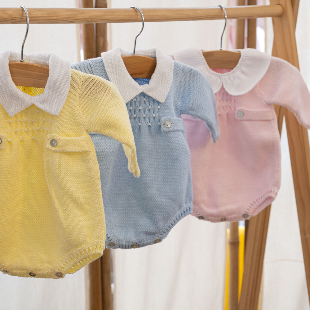 The highlight is the delicate smocked embroidery on the chest, meticulously made by hand, adding a charming and artisanal touch to this essential piece. Designed to be gentle on delicate skin, it’s perfect for all-day wear, whether at home or out and about.