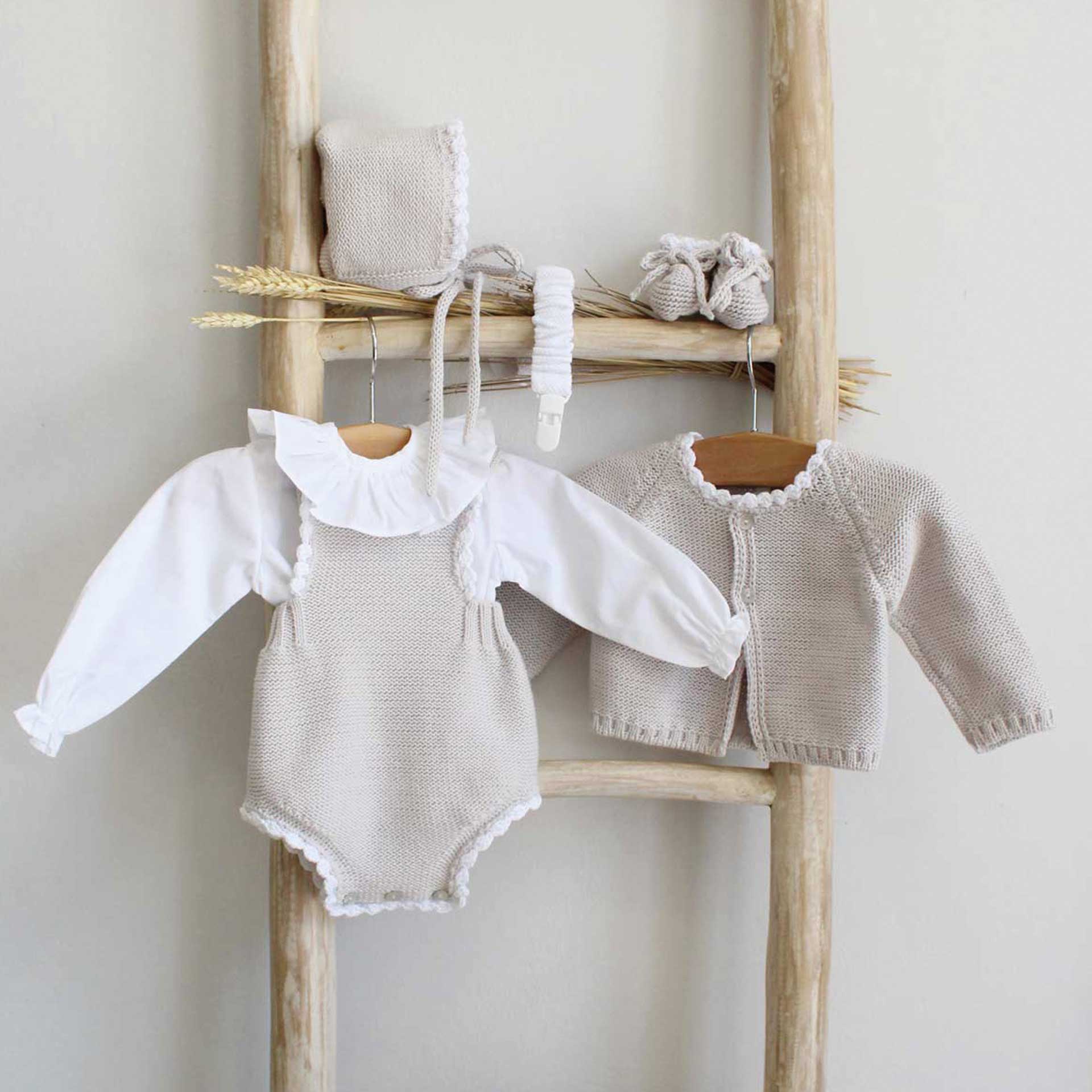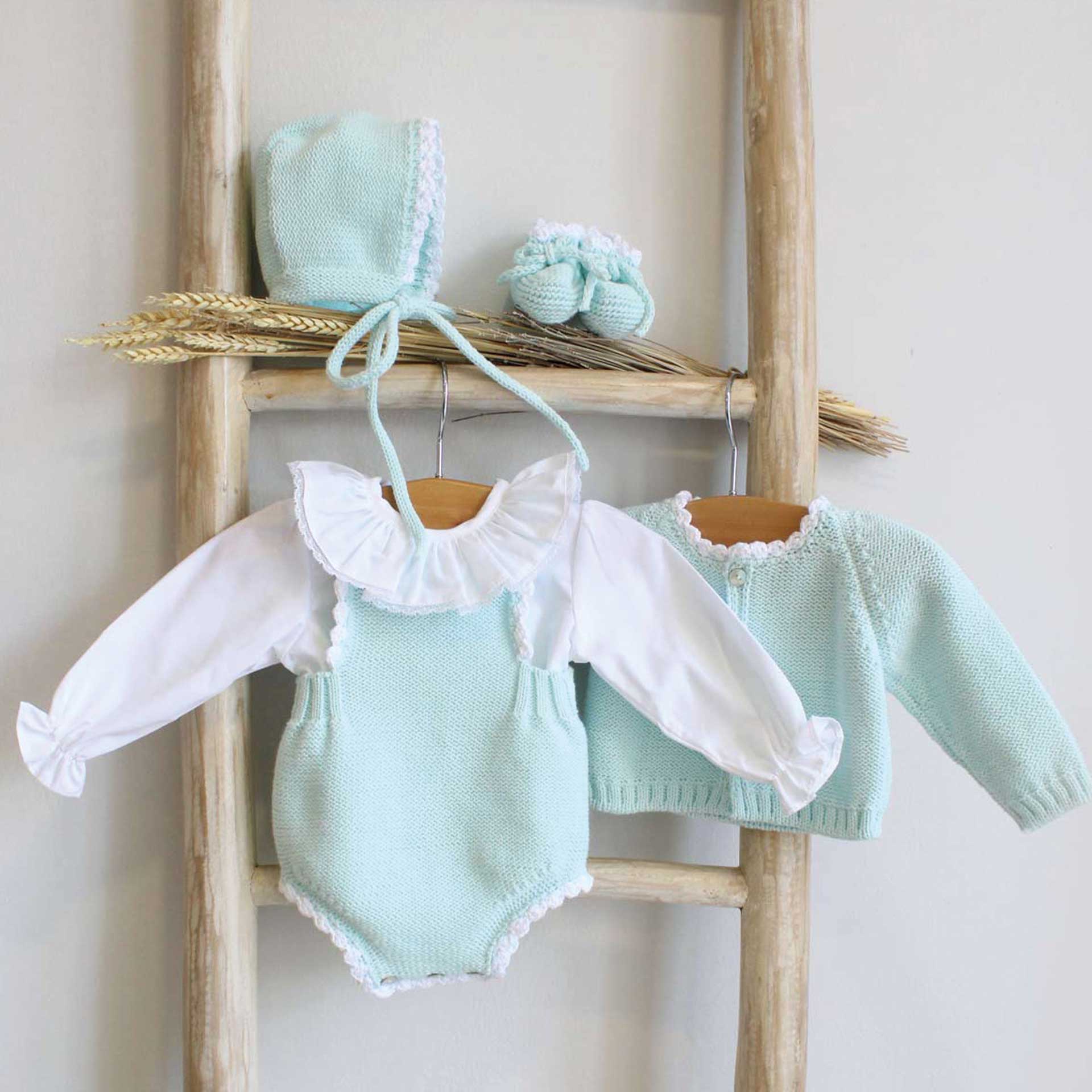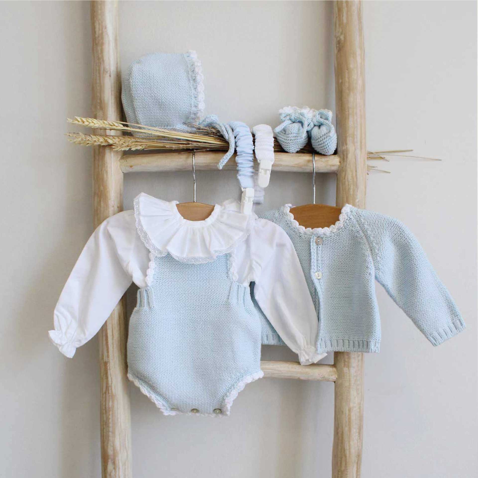 Fôfo tricotado em algodão com detalhe de ondinhas feitas à mão. Produzido em fio italiano premium super suave na pele. Conjugue com o casaco, touca e botinhas da mesma linha para um look perfeito. Feito em Portugal