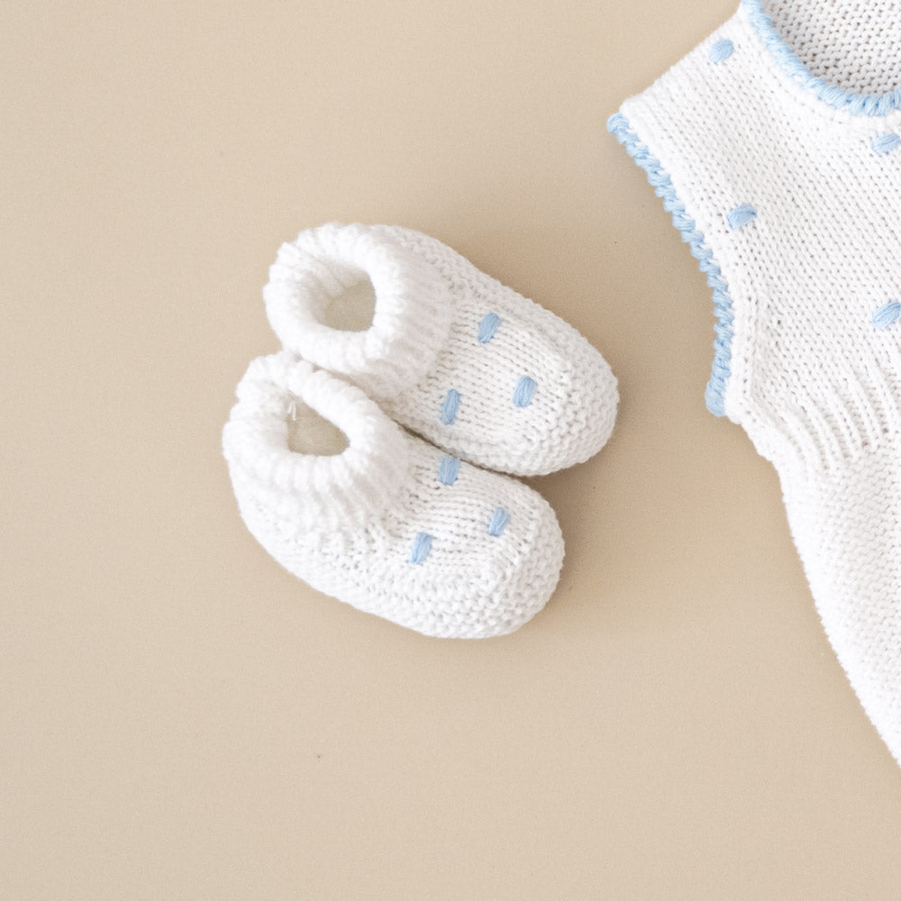 Knitted Cotton Romper with Hand-Embroidered Dots