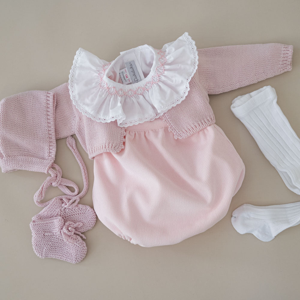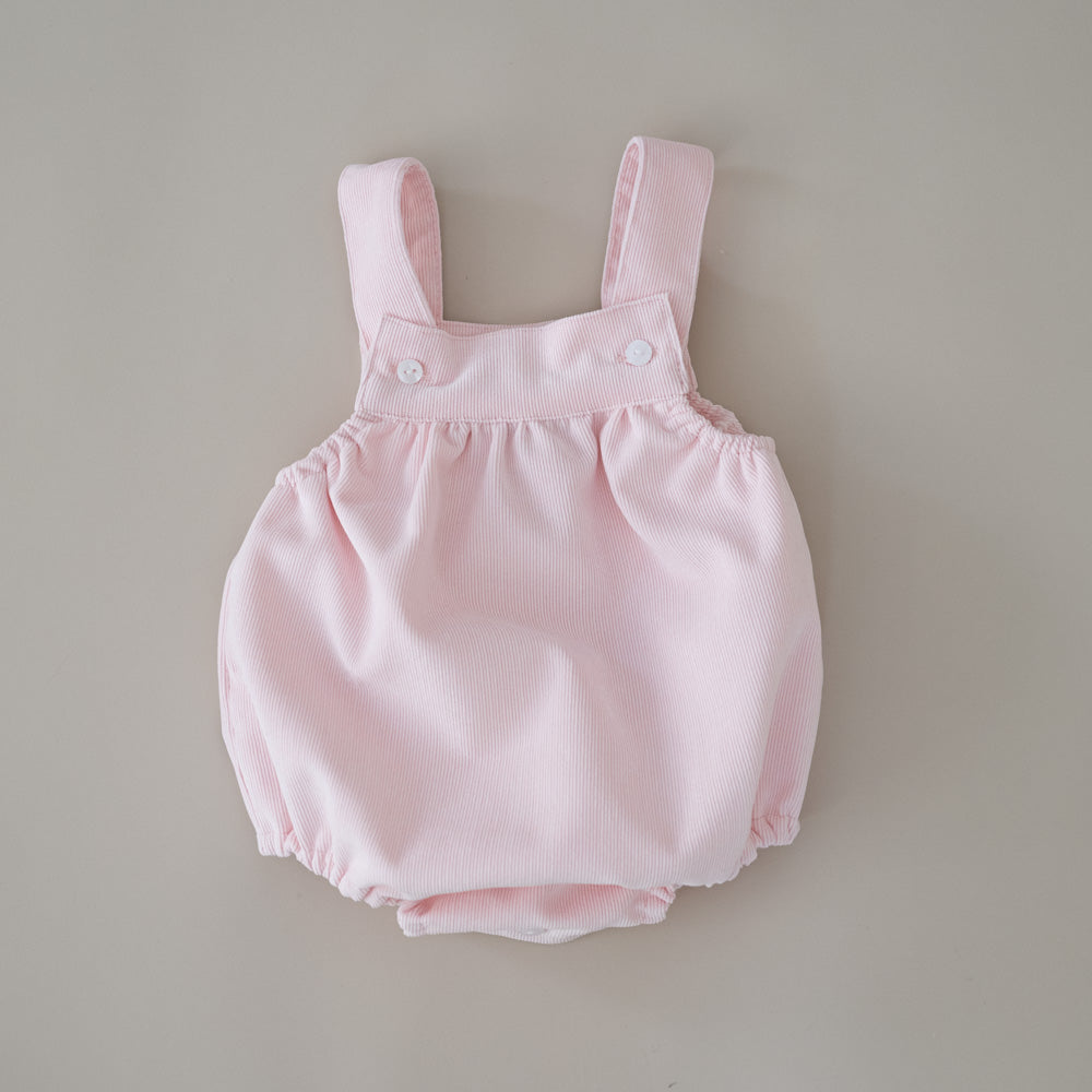 A practical and versatile romper with straps, perfect for any season. Pair it with a long-sleeve shirt and a knit cardigan on cooler days, or wear it with a short-sleeve shirt—or even on its own—during warm summer days. Available in various patterns.