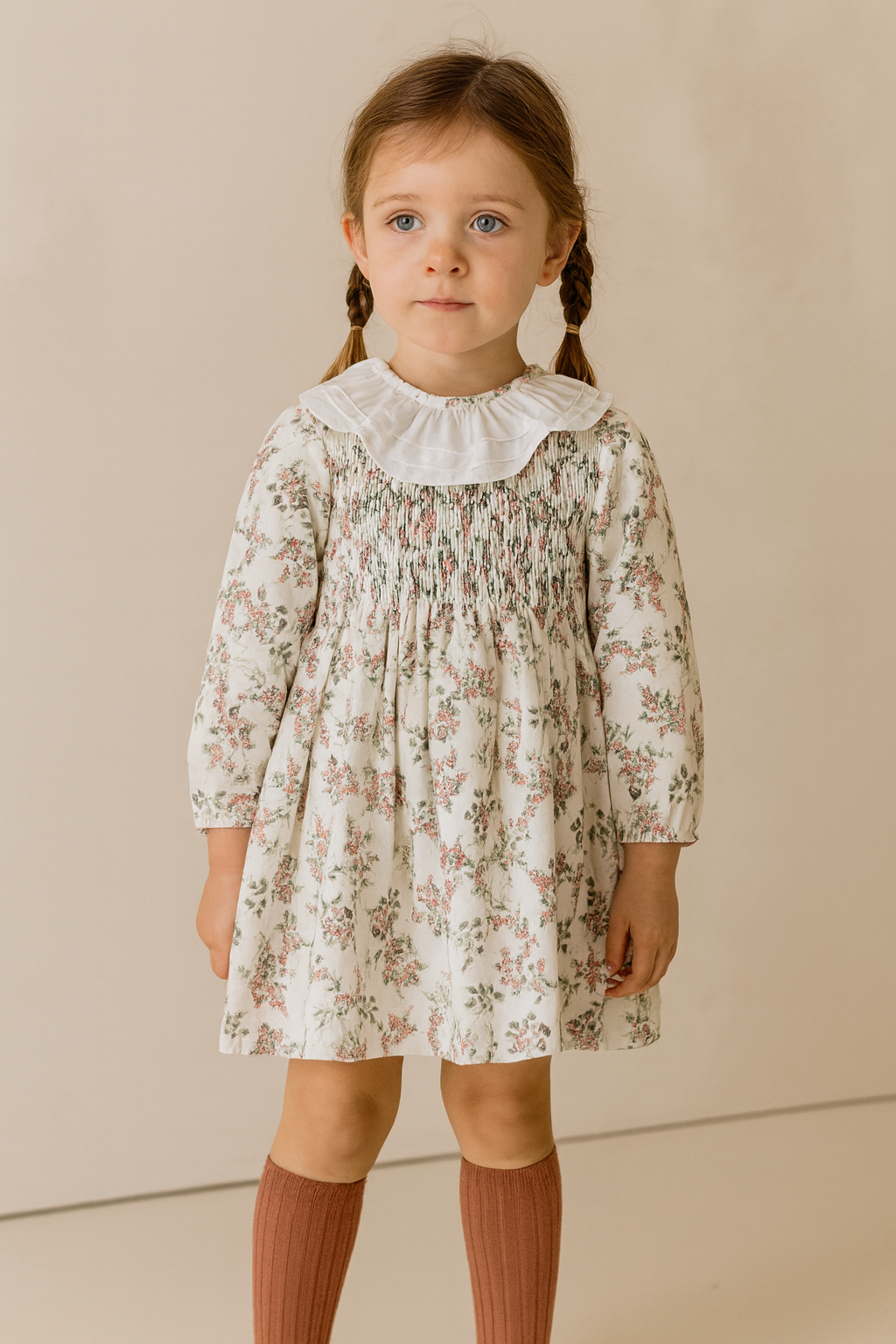 Girls' Long-Sleeve Liberty Floral Dress with Lace Detail