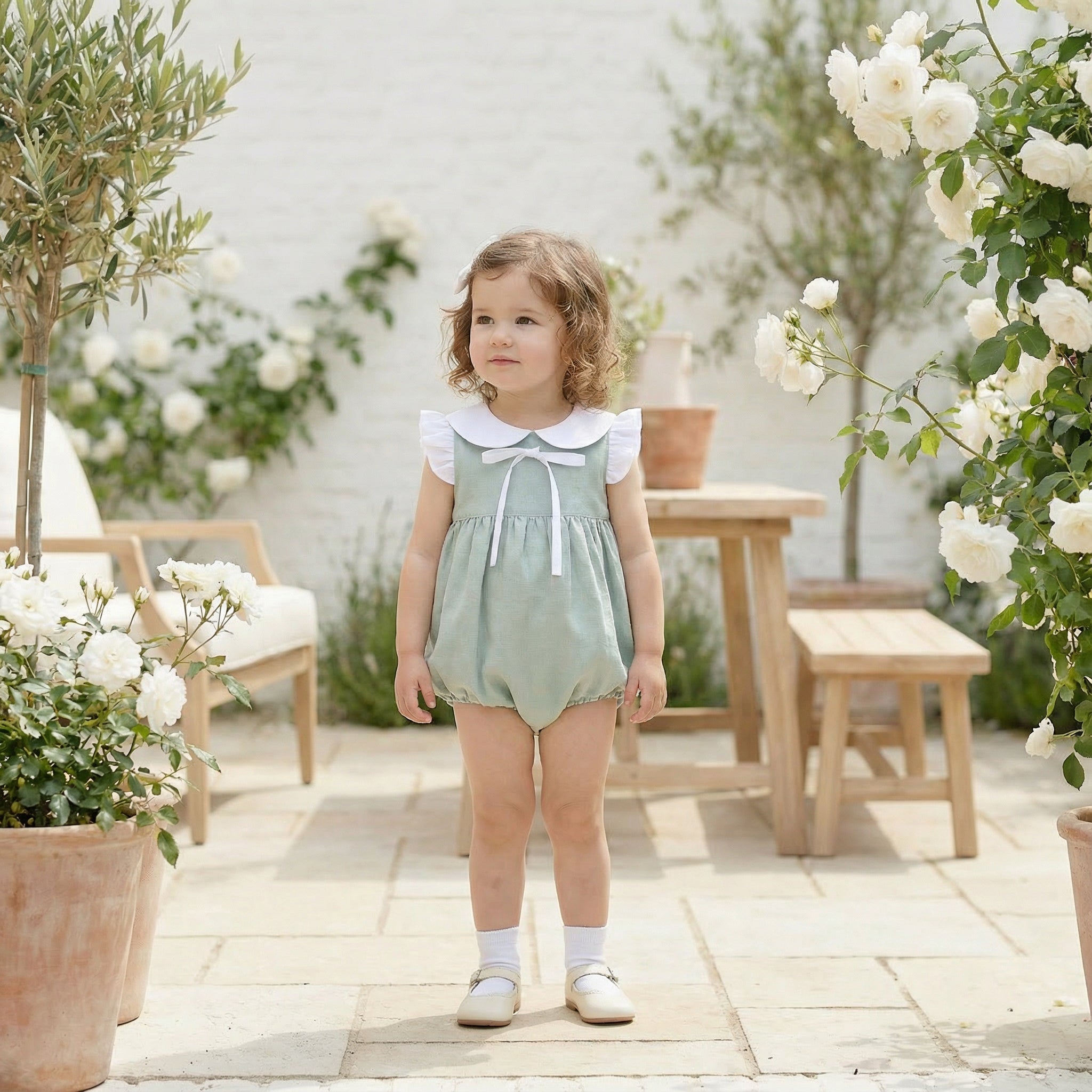 Girls Floral Dress with Peter Pan Collar and Smocked Chest