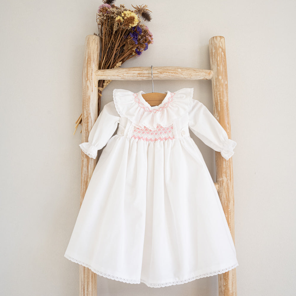 Cueiro rosa e branco bordado à mão