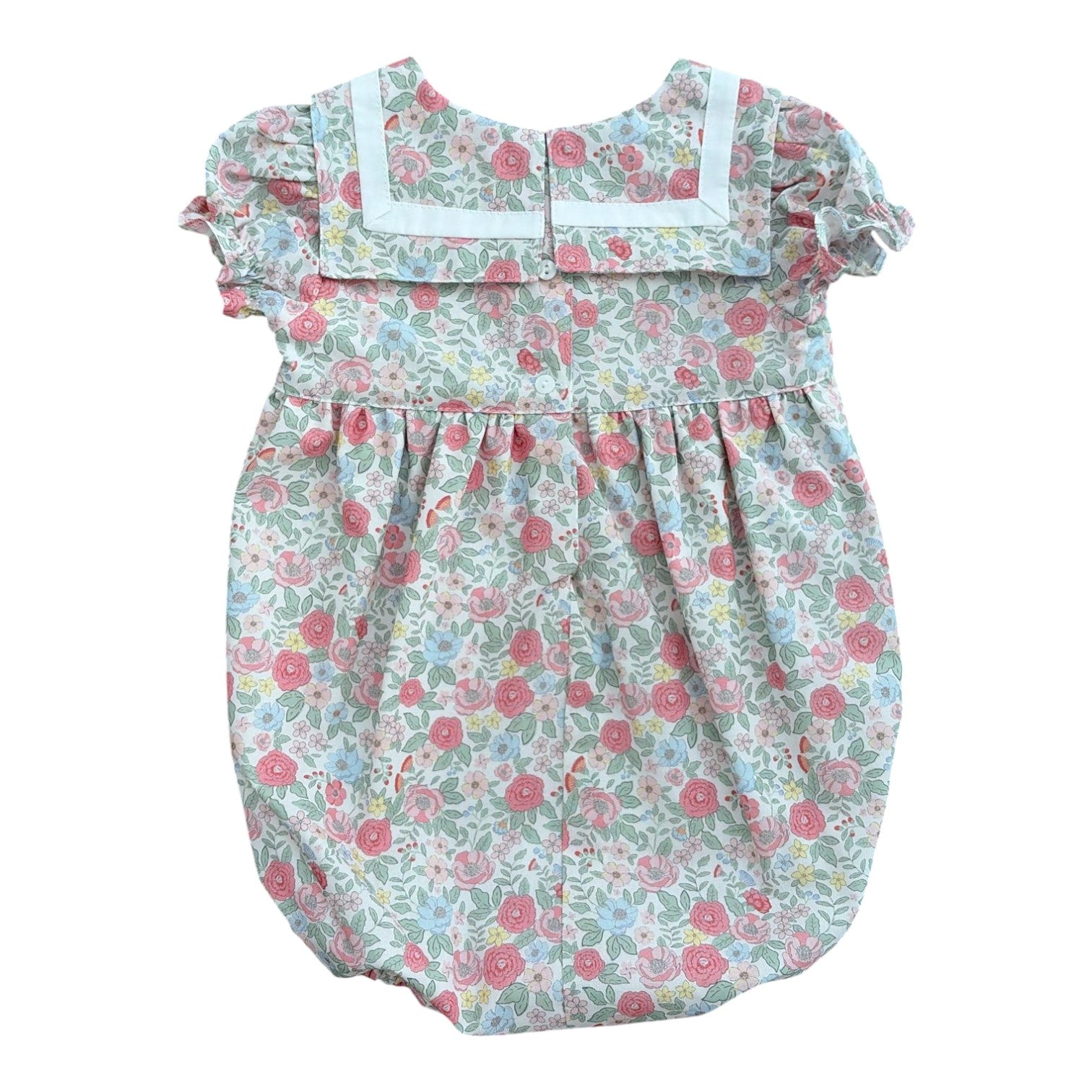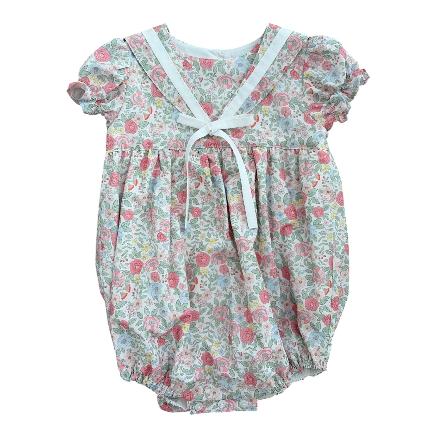 Floral Romper with Sailor Collar and little bow at the front. 100% cotton