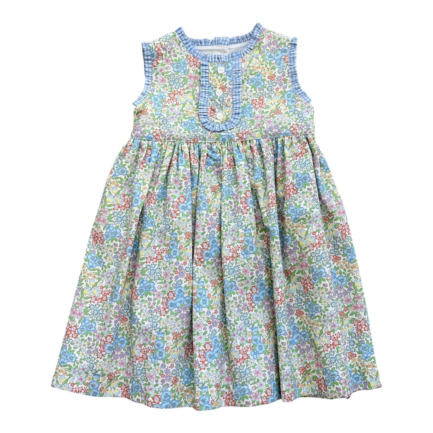 Floral Dress with Gingham ruffle at the front and neck. 100% cotton