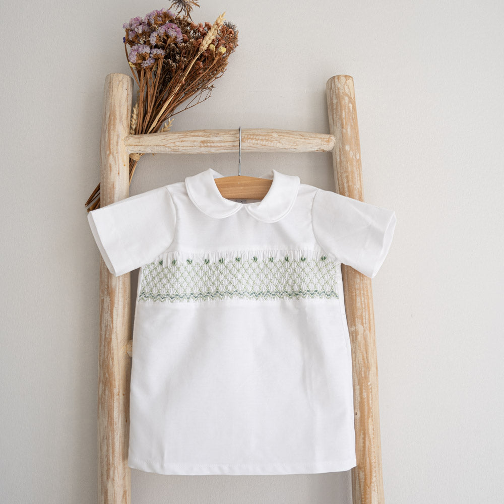 Handgestickter Strampler mit Peter-Pan-Kragen