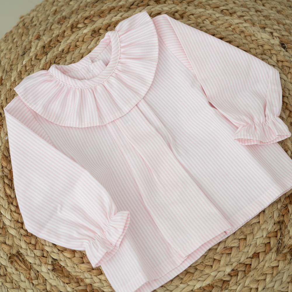 Long sleeve Stripes Shirt with Ruffle Collar