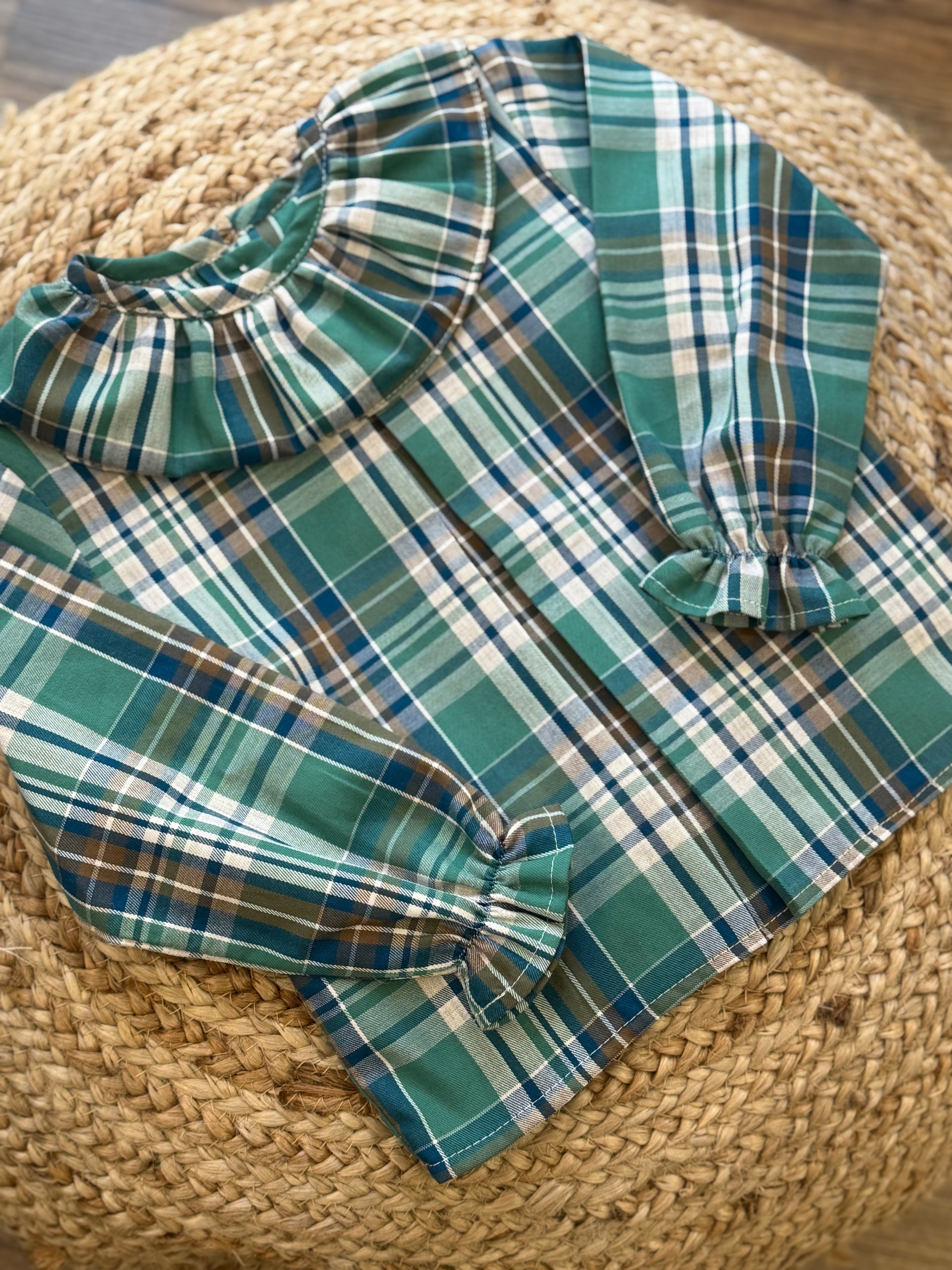 Plaid Shirt with Peter Pan Collar. 100% cotton