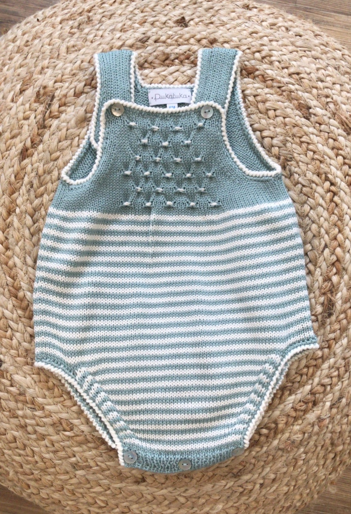 Hand Smocked Knitted Romper with Stripes produced in wool. Pair it with the cardigan from the same line, the adorable boots and the hand smocked shirt in either long or short sleeve for the perfect look. 50%wool/50% acrylic.  Produced in Portugal