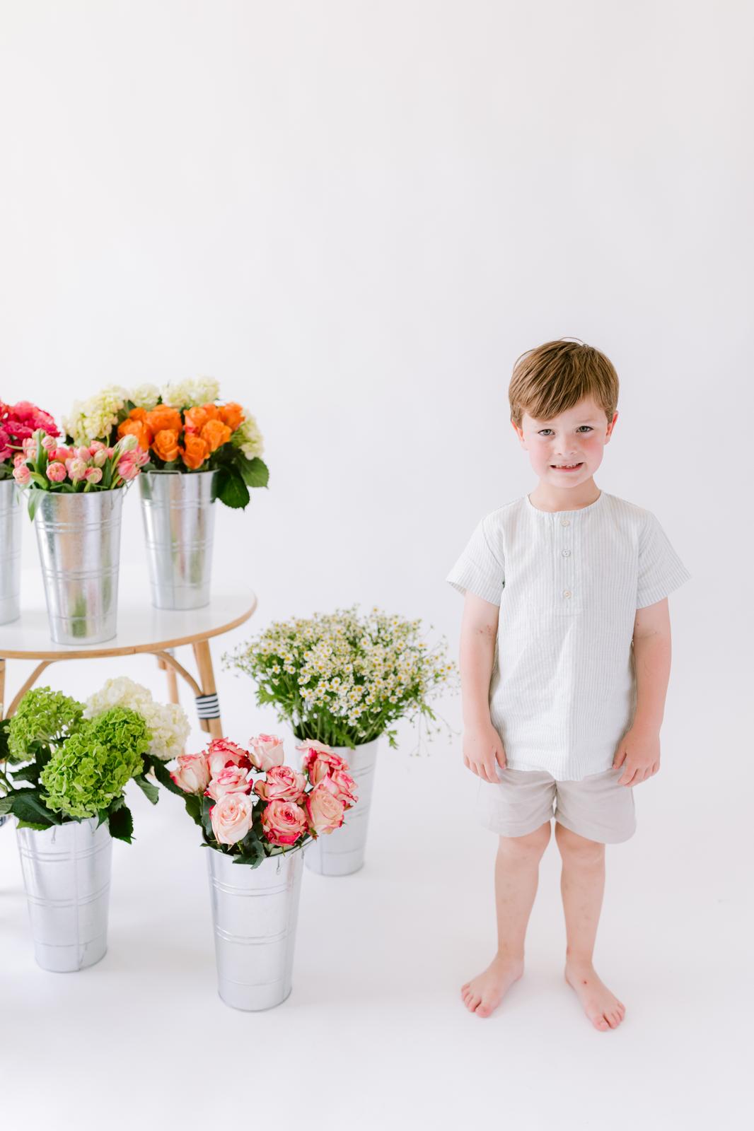 Boys' Short-Sleeve Striped Shirt in Blue and White