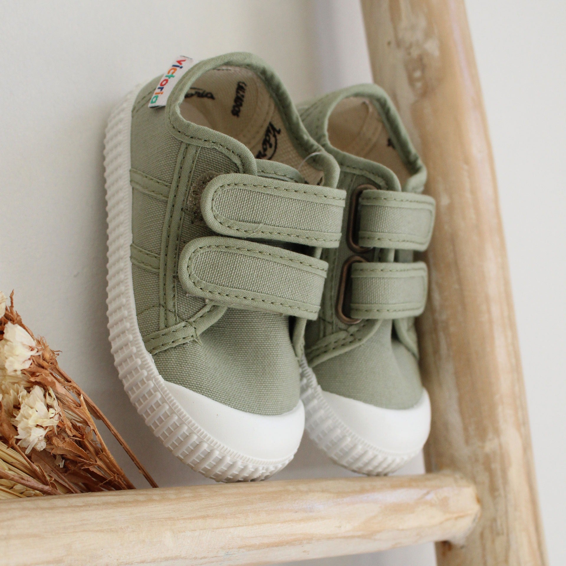 In Spanien hergestellte Kinderschuhe aus hochwertigem, umweltfreundlichem Baumwoll-Canvas. Sohle aus vulkanisiertem Naturkautschuk, die Haltbarkeit und Flexibilität garantiert. Außerdem mit verstärkter Zehenpartie aus Gummi für mehr Stabilität und zwei Riemen zum selbstständigen An- und Ausziehen. Etikett mit mehrfarbigem Logo an der Seite. Wird mit einer Innensohle für zusätzlichen Komfort geliefert. Sie sind leicht und einfach zu waschen.