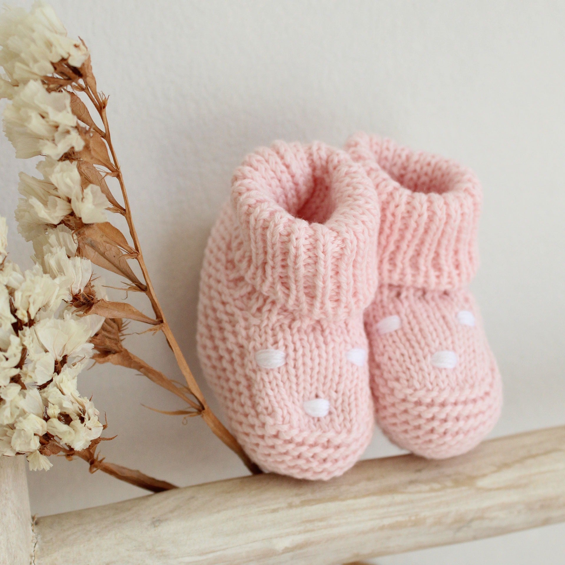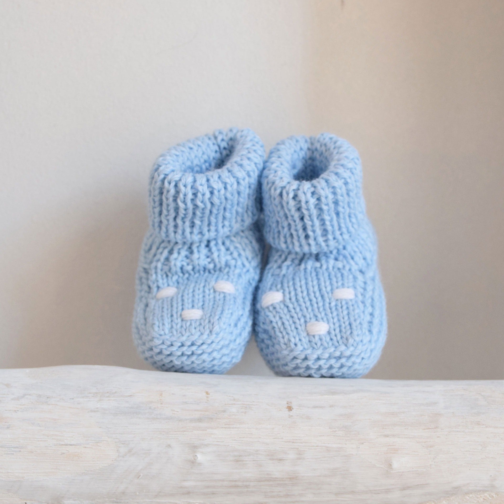 Gestrickte Booties mit handgestickten Punkten
