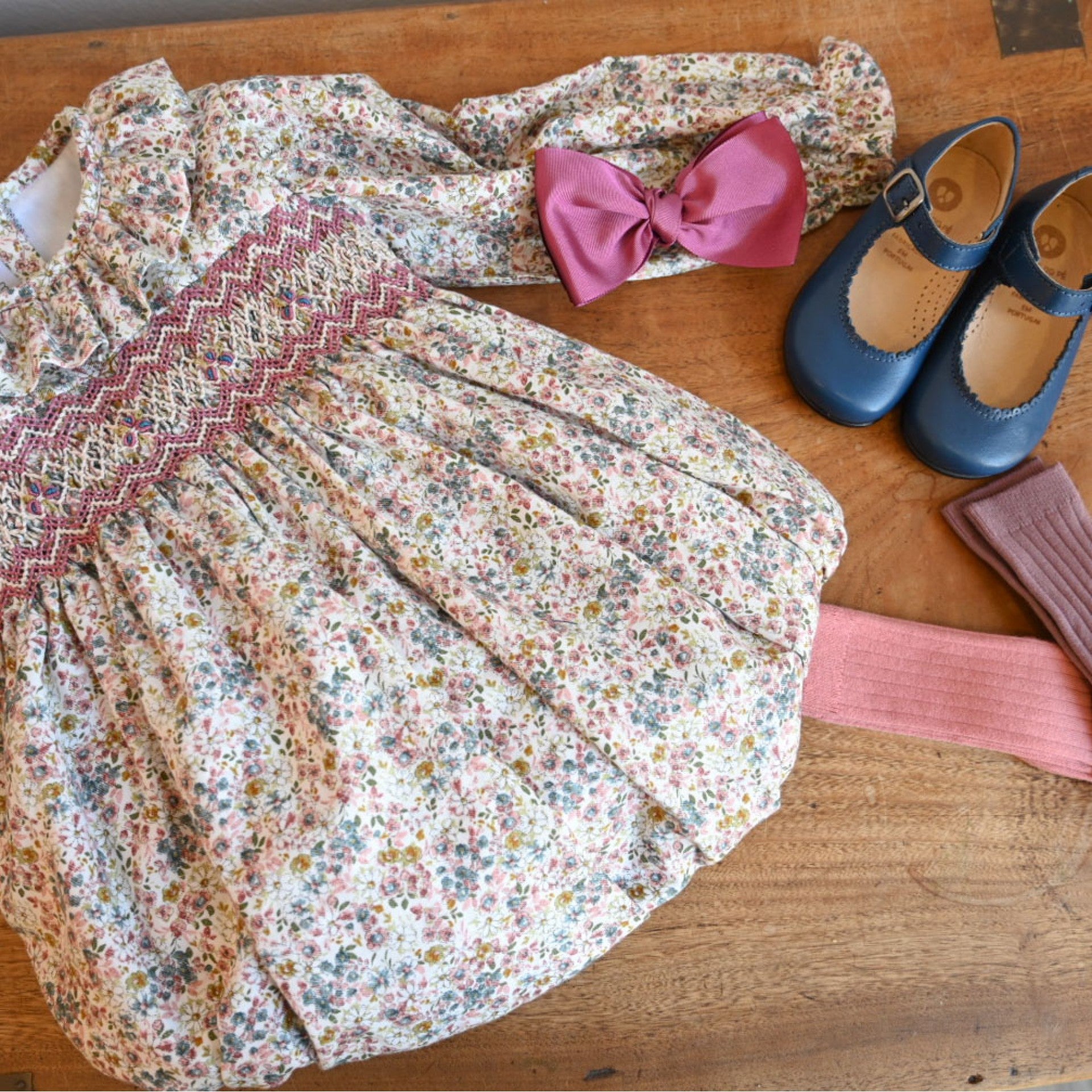 Handgesmoktes Blumenkleid mit Rüschenkragen