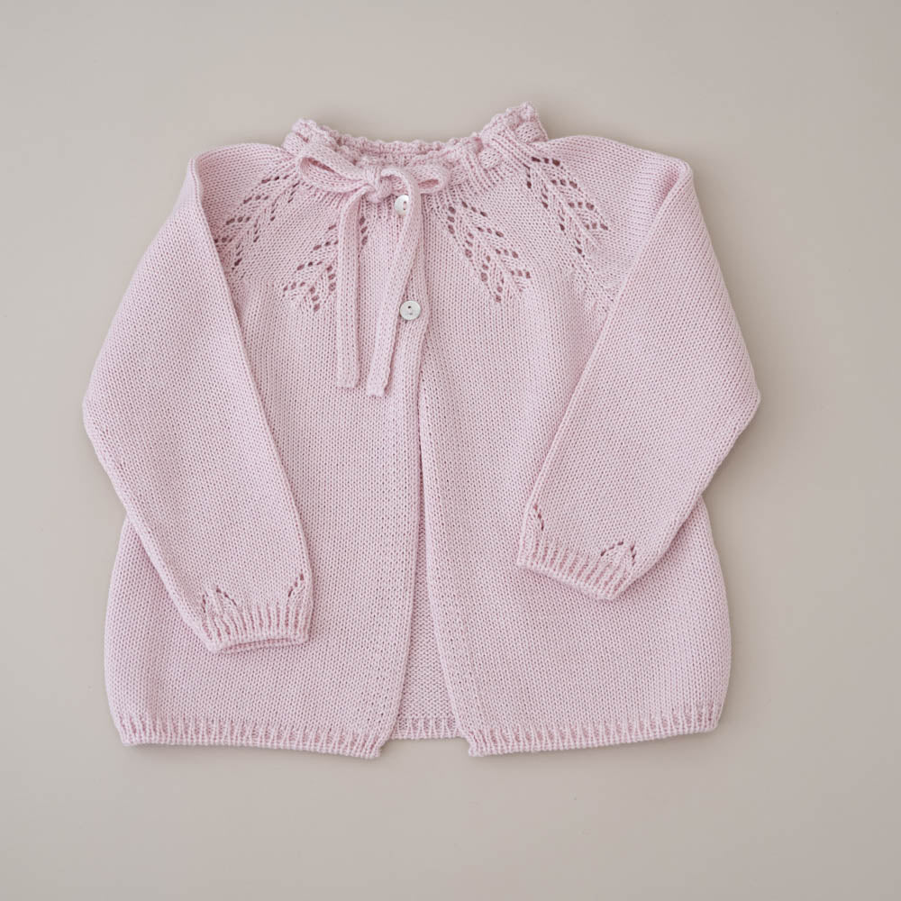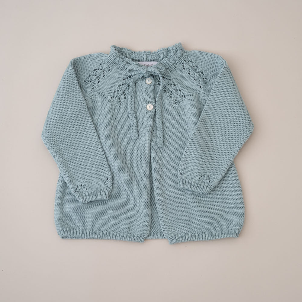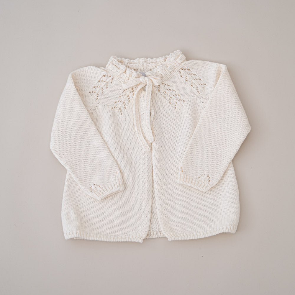 This beautifully crafted girls' knitted cardigan features a decorative chest detail and a cord that ties at the neck. Made from high-quality Italian yarn, it offers a soft, allergy-free blend of wool and acrylic for maximum comfort and warmth. Perfect for a cozy, stylish look—crafted with care in Portugal.