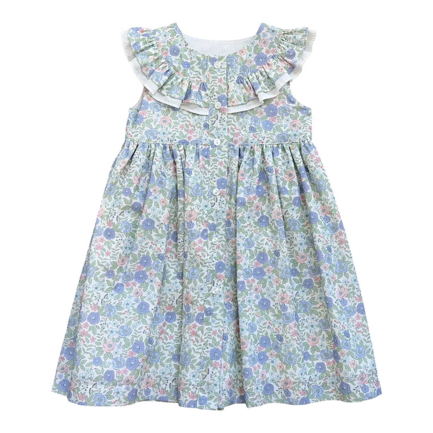Floral Dress with white ruffle at the front. 100% cotton