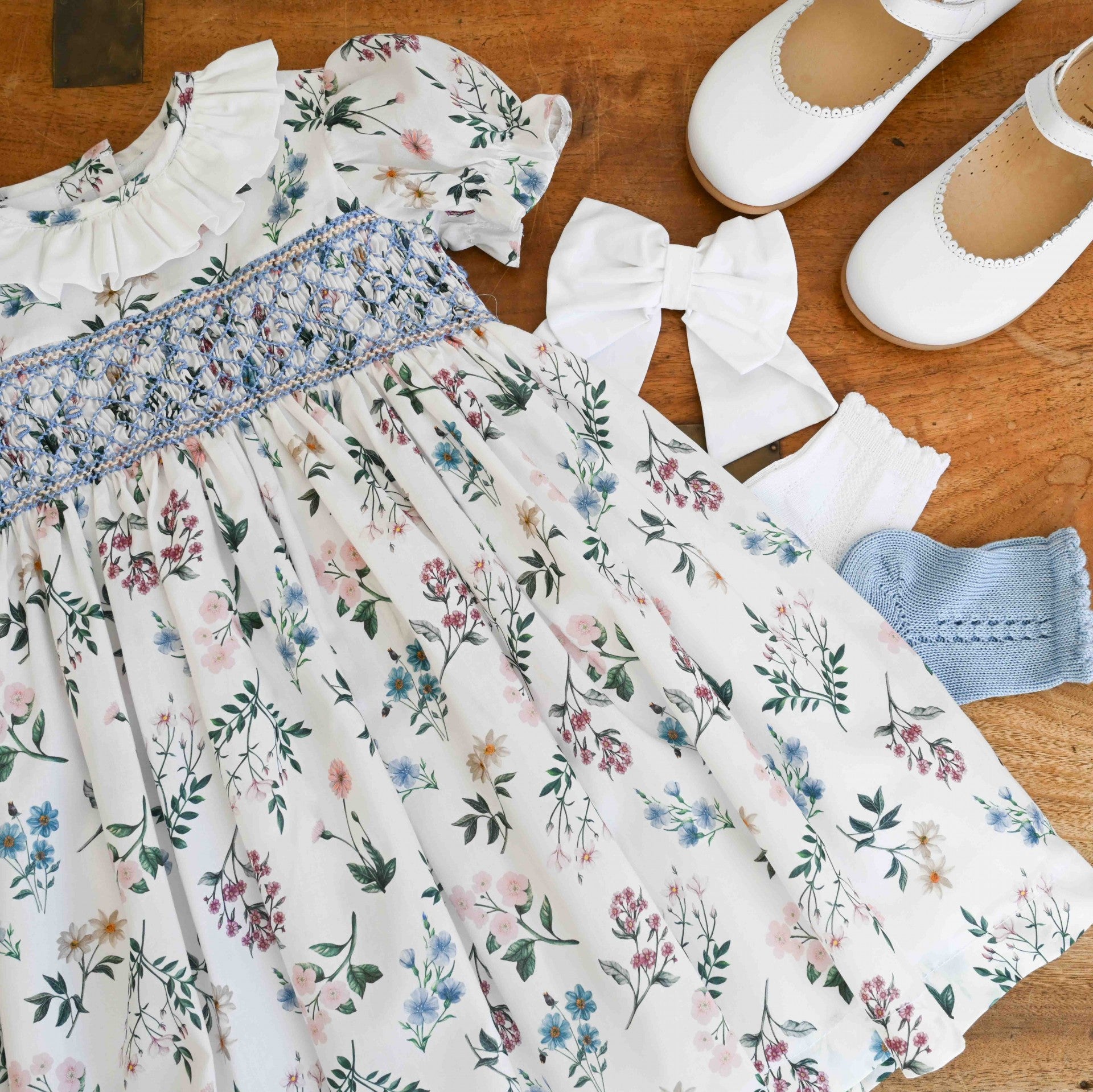 Handgesmoktes Kleid aus Liberty-Blumenmuster