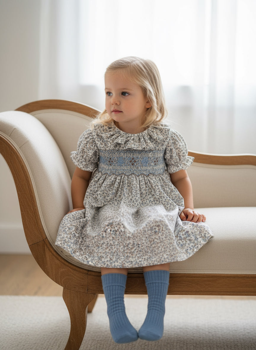 Short sleeved Floral Hand Smocked Dress. Lined. 100% cotton