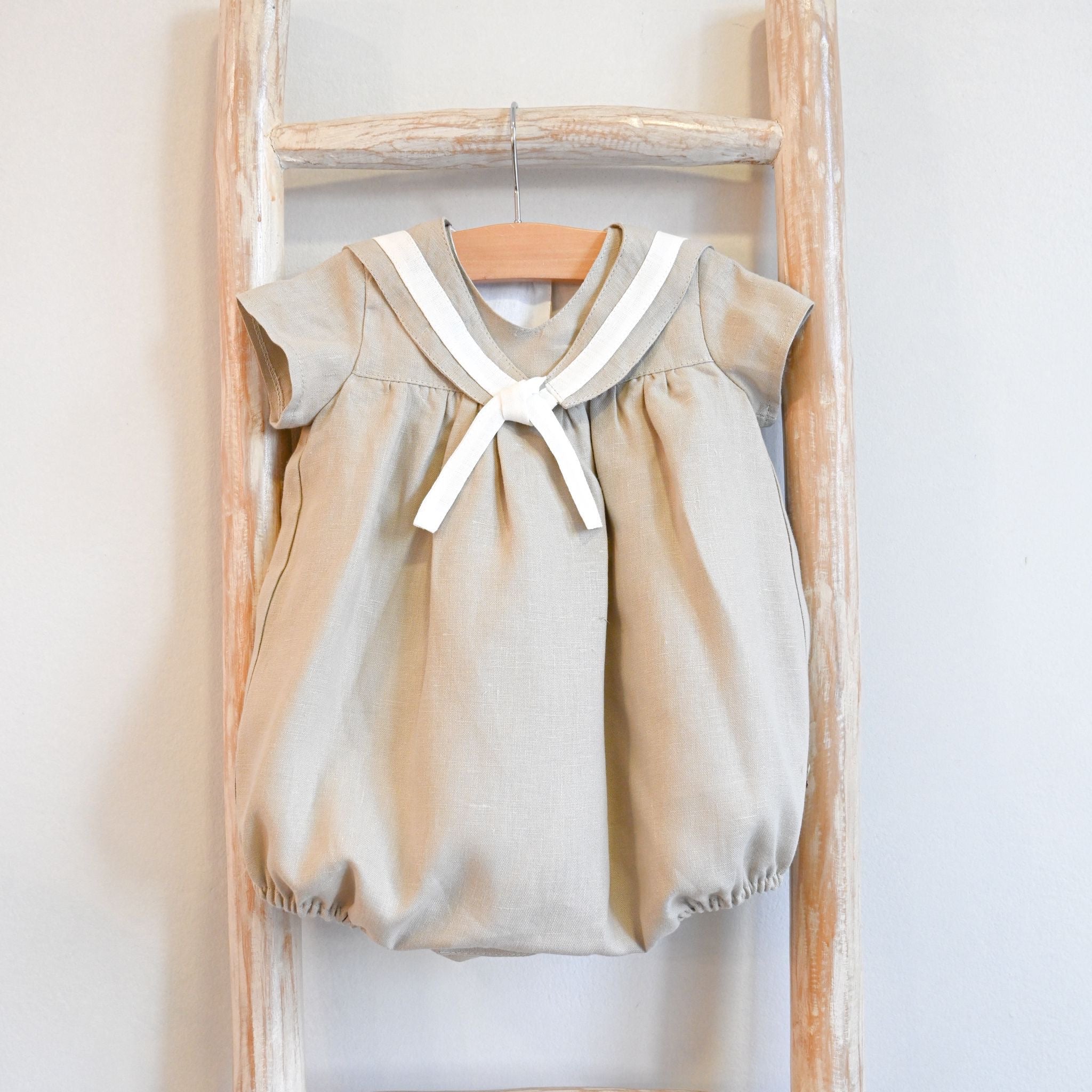 Beige Linen Sailor-Style Romper
