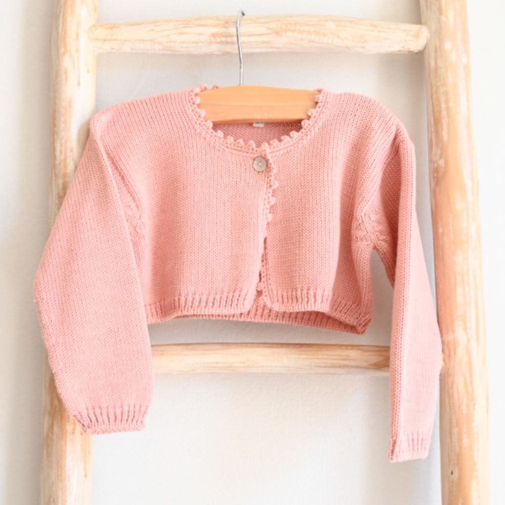 Diese klassische Strickjacke wird in Portugal aus hochwertigem italienischem Garn hergestellt und vereint Komfort und Stil. Sie ist weich, hypoallergen und pillingresistent und somit die perfekte Ergänzung für die Garderobe jedes Kindes. Dieses vielseitige und zeitlose Stück passt perfekt zu Kleidern und Strampelanzügen.