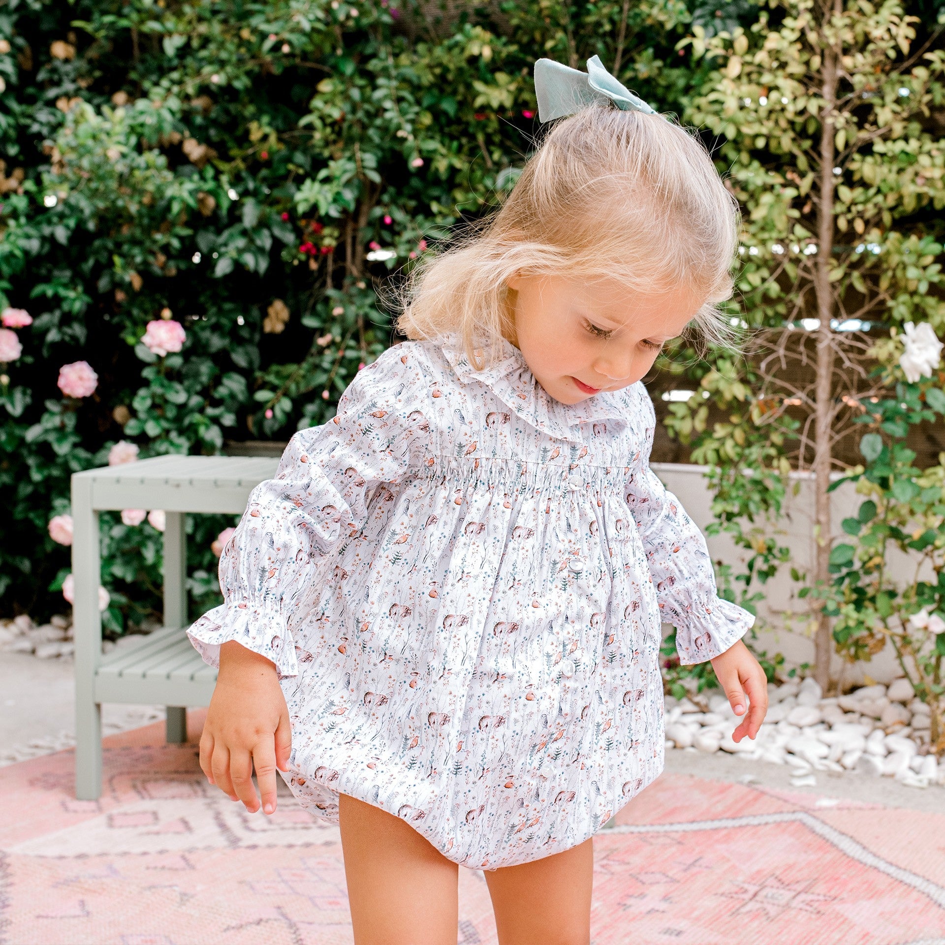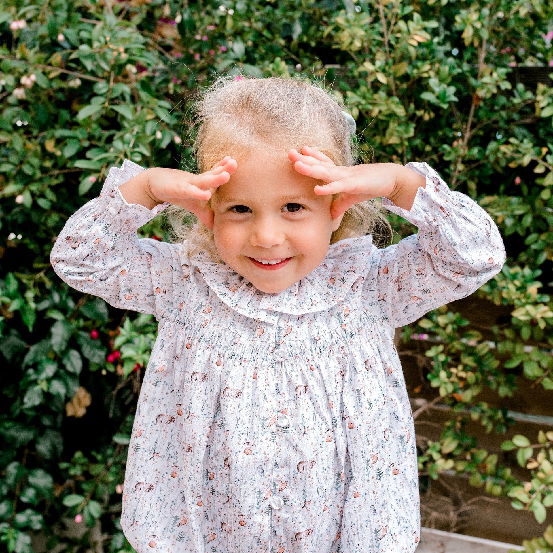 This Animal Print Romper features a delicate ruffle collar and is fully lined. Made in Portugal
