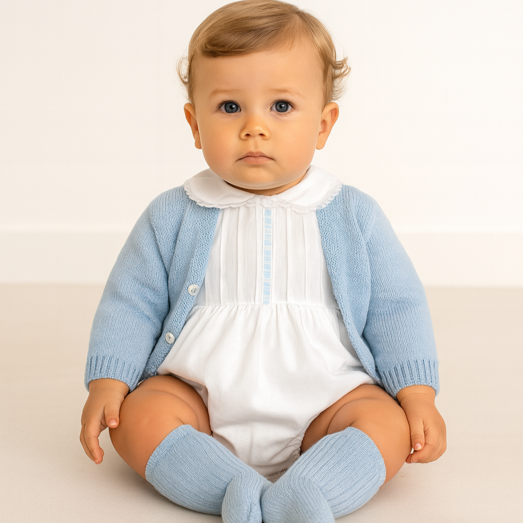 Dieser entzückende Baumwoll-Strampler hat zarte Faltendetails auf der Brust, die einem klassischen Design einen Hauch von Eleganz verleihen. Er ist für zusätzlichen Komfort vollständig gefüttert und ein vielseitiges Kleidungsstück, das das ganze Jahr über getragen werden kann. Er ist weich und atmungsaktiv und eignet sich perfekt zum Tragen in mehreren Schichten oder allein, was ihn zu einem unverzichtbaren Kleidungsstück für die Garderobe Ihres Babys macht. Bequem, stilvoll und praktisch – ein echtes Must-have für jeden Kleinen.
