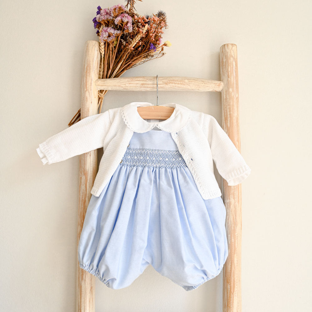 Perfect for all seasons, this beautifully crafted romper features delicate hand embroidery on the bodice. Wear it on its own during warmer days or layer it with a short or long-sleeve shirt for a timeless look. Pair it with our embroidered blouse for the perfect outfit. Fully lined and made in Portugal.