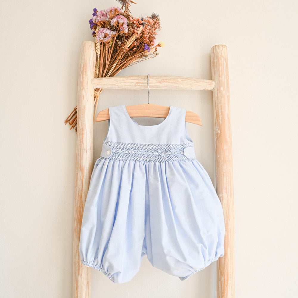 Sleeveless Romper with Hand Smocked and Embroidery on chest