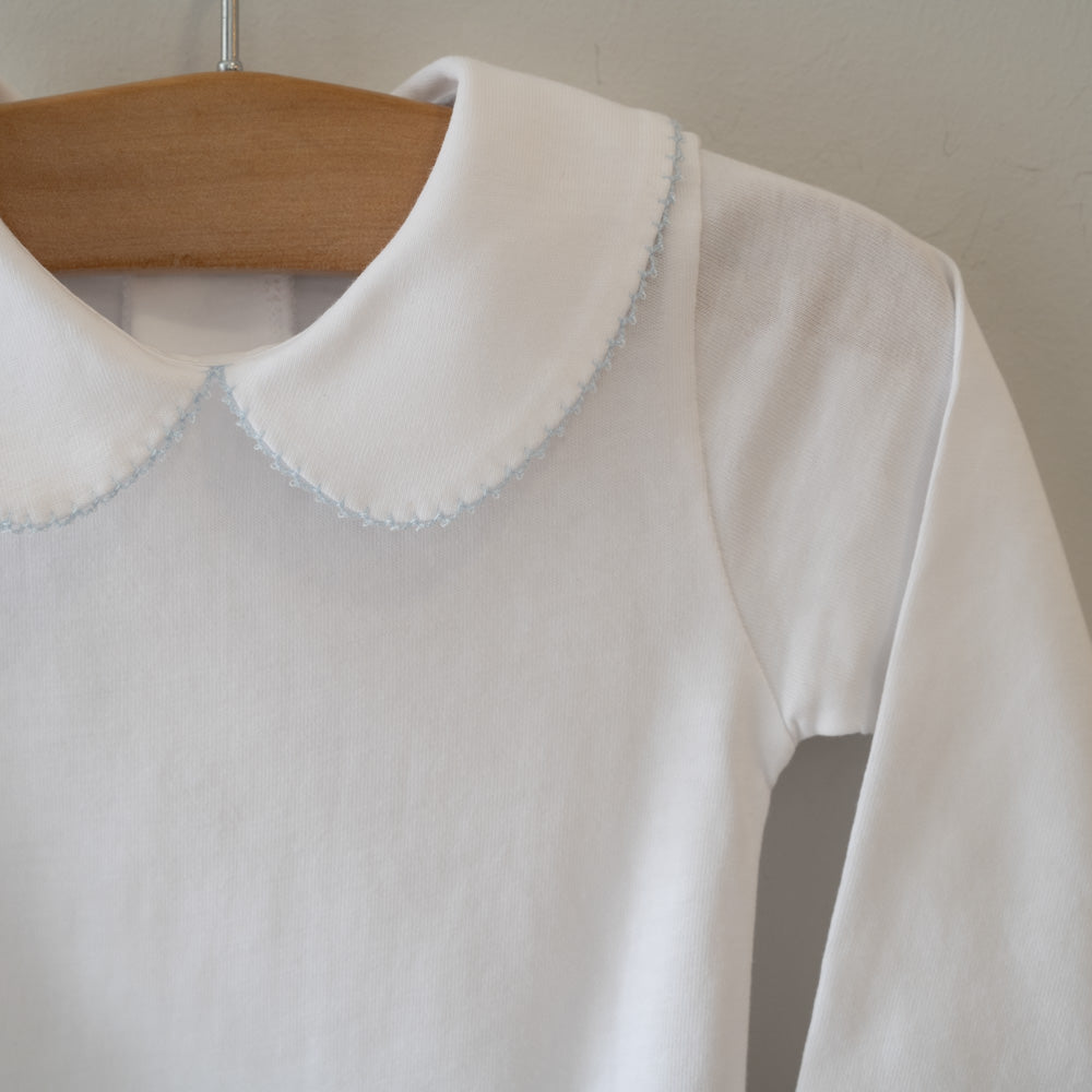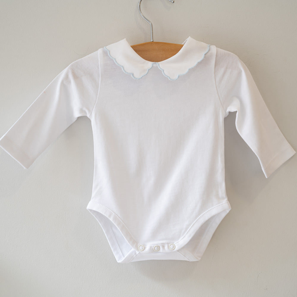Long-Sleeve Cotton Bodysuit with Embroidered Collar - Blue