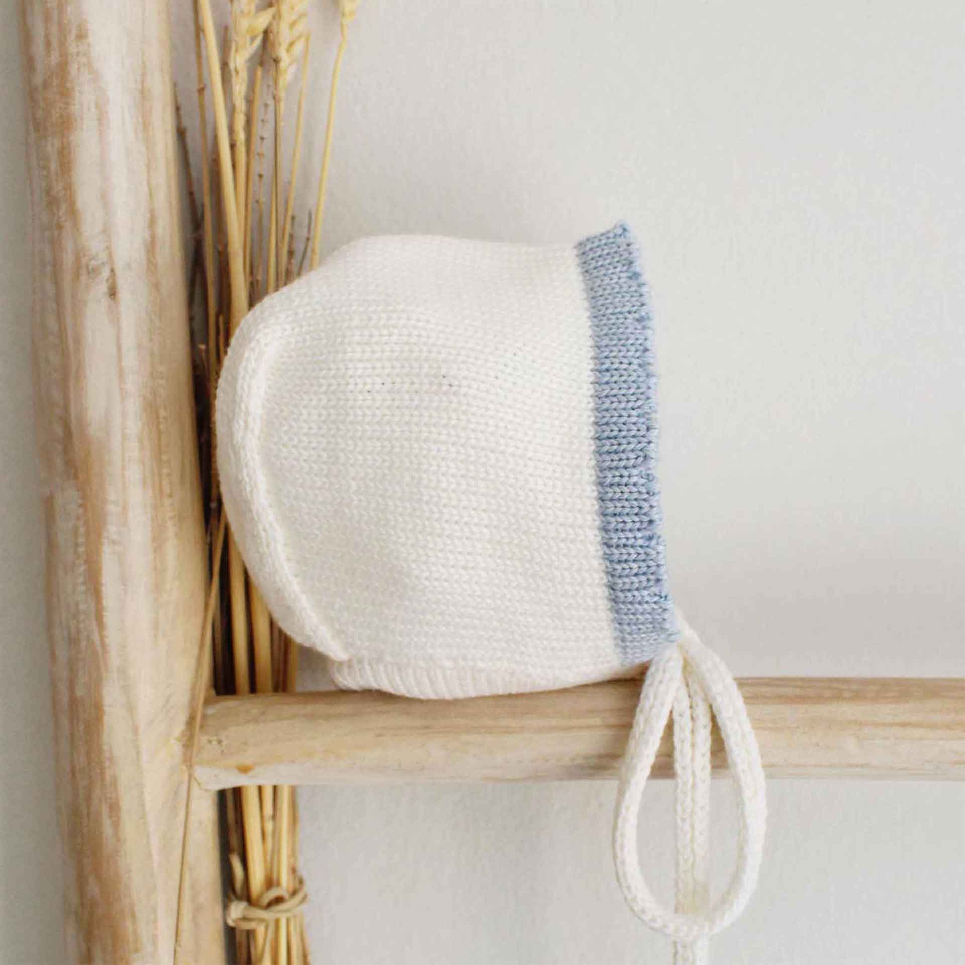Classic and cozy, our Knitted Bonnet features a beautiful cable-knit detail for an elegant touch. Designed with a tie cord that forms a sweet bow, it ensures a snug and adjustable fit, perfect for keeping little heads warm and stylish.