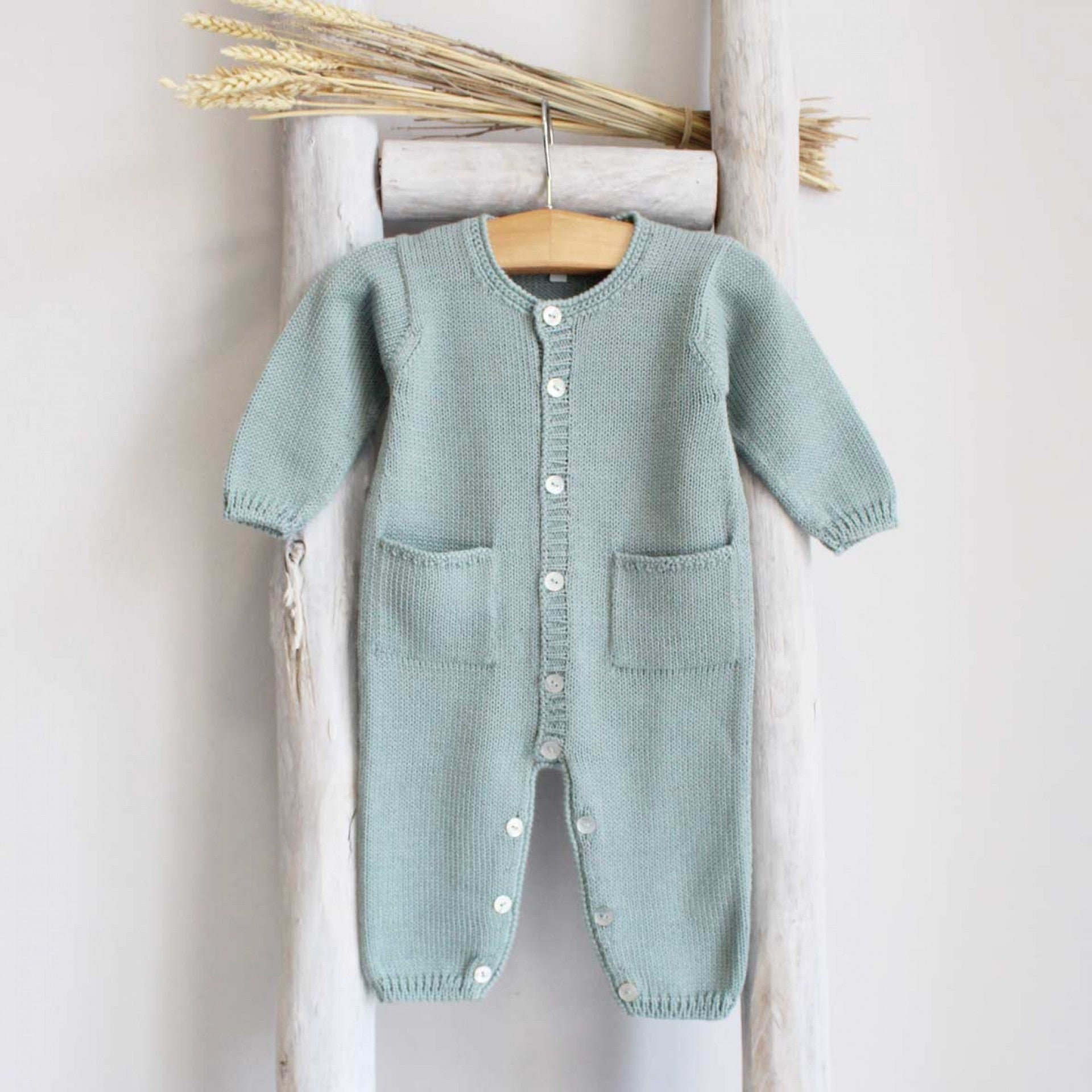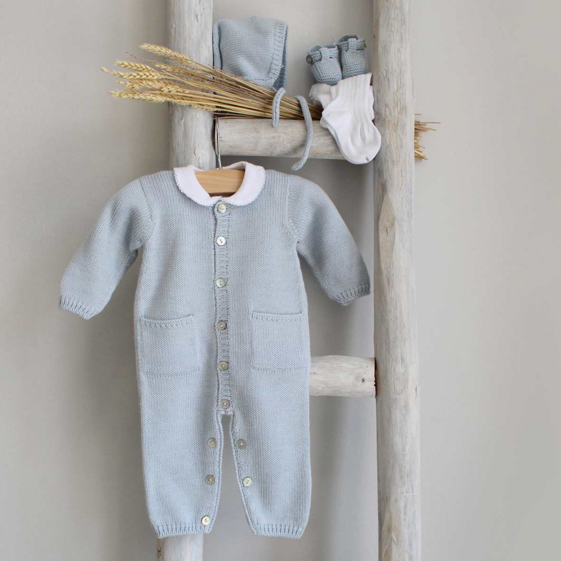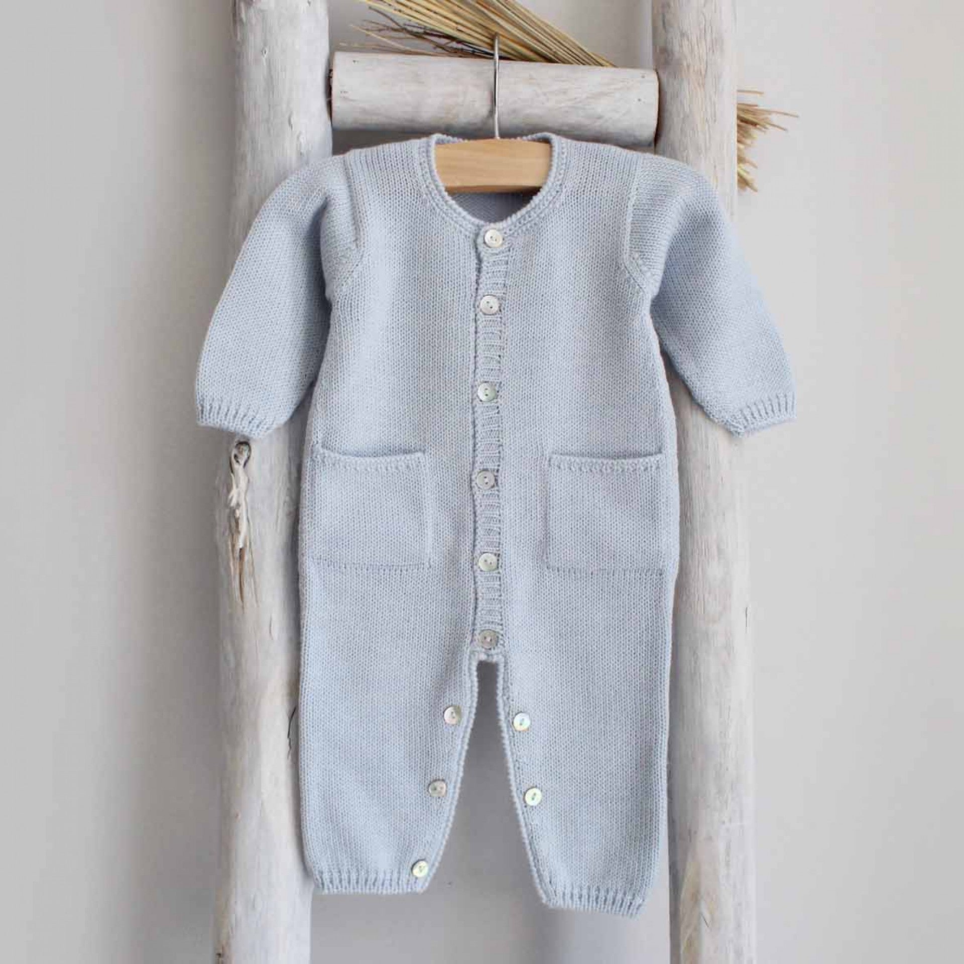 This simple yet stylish long sleeve and legged romper is crafted from soft, high-quality Italian yarn, ensuring both comfort and warmth for your little one. Featuring functional front pockets, it combines practicality with a refined design. Perfect for everyday wear, this timeless piece keeps your baby cozy and stylish, made in Portugal.