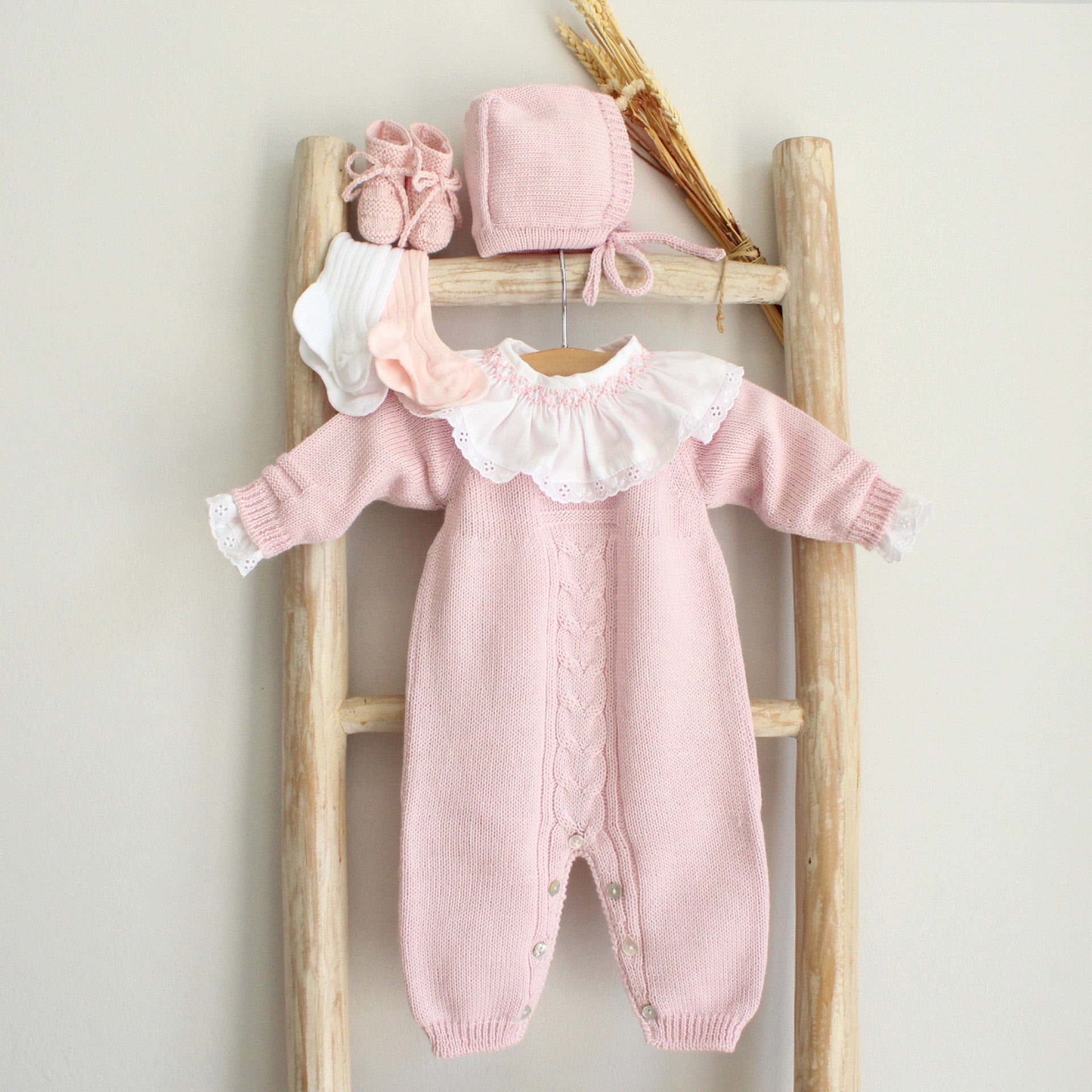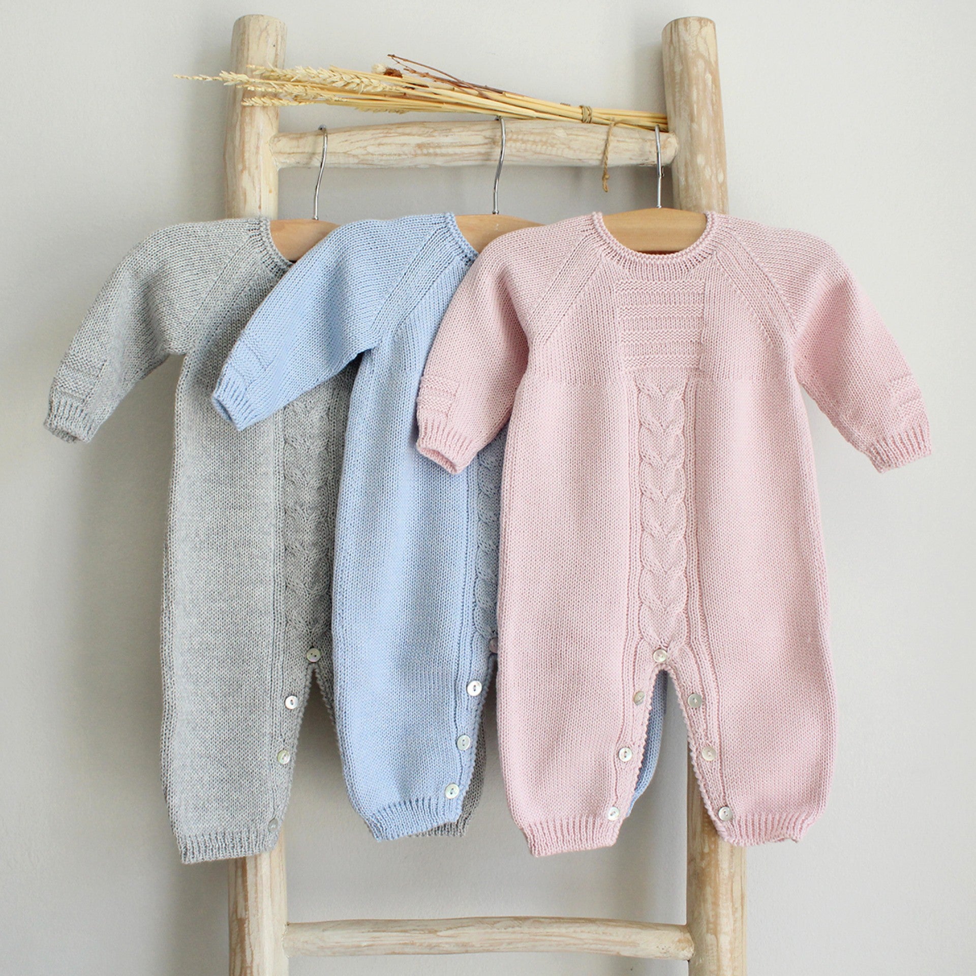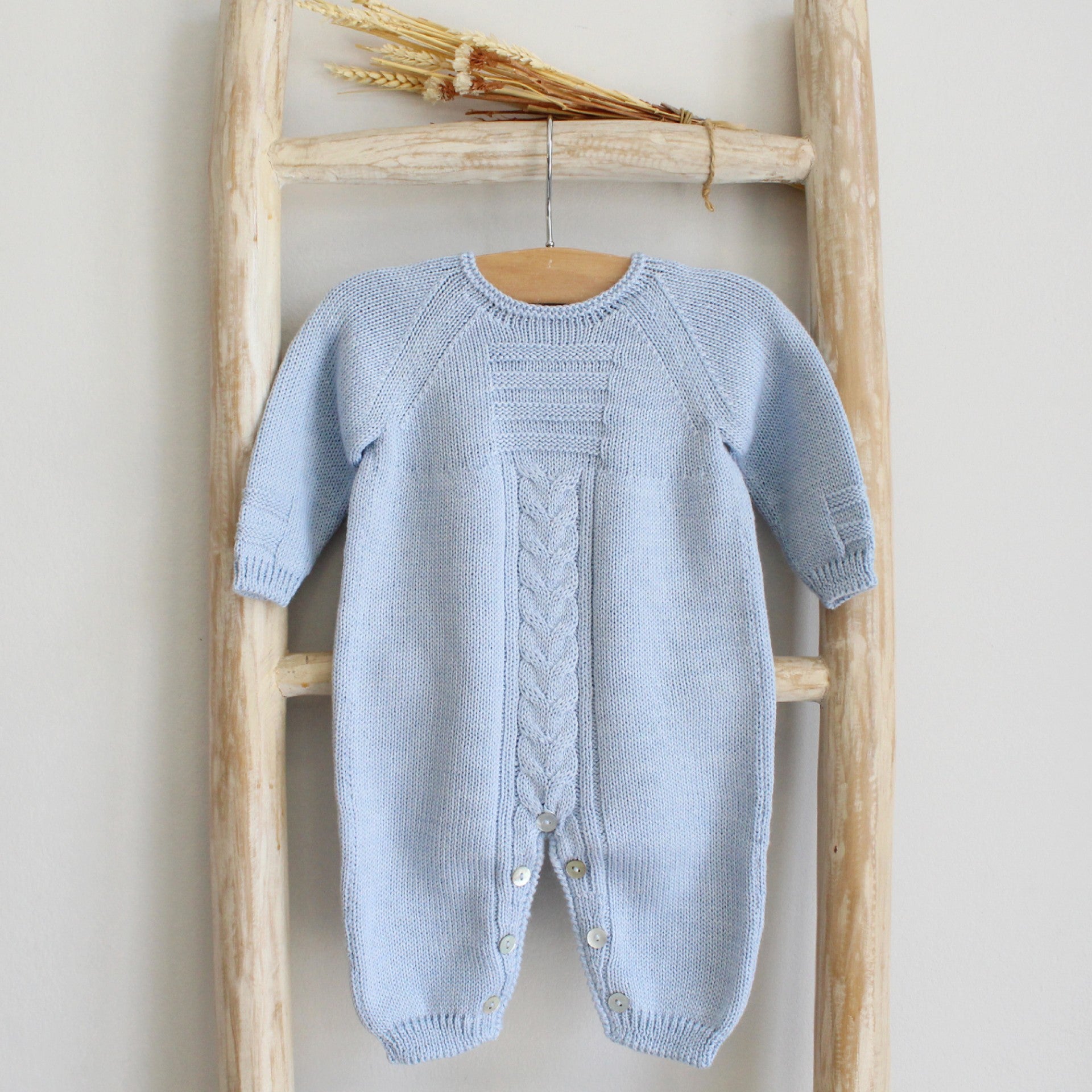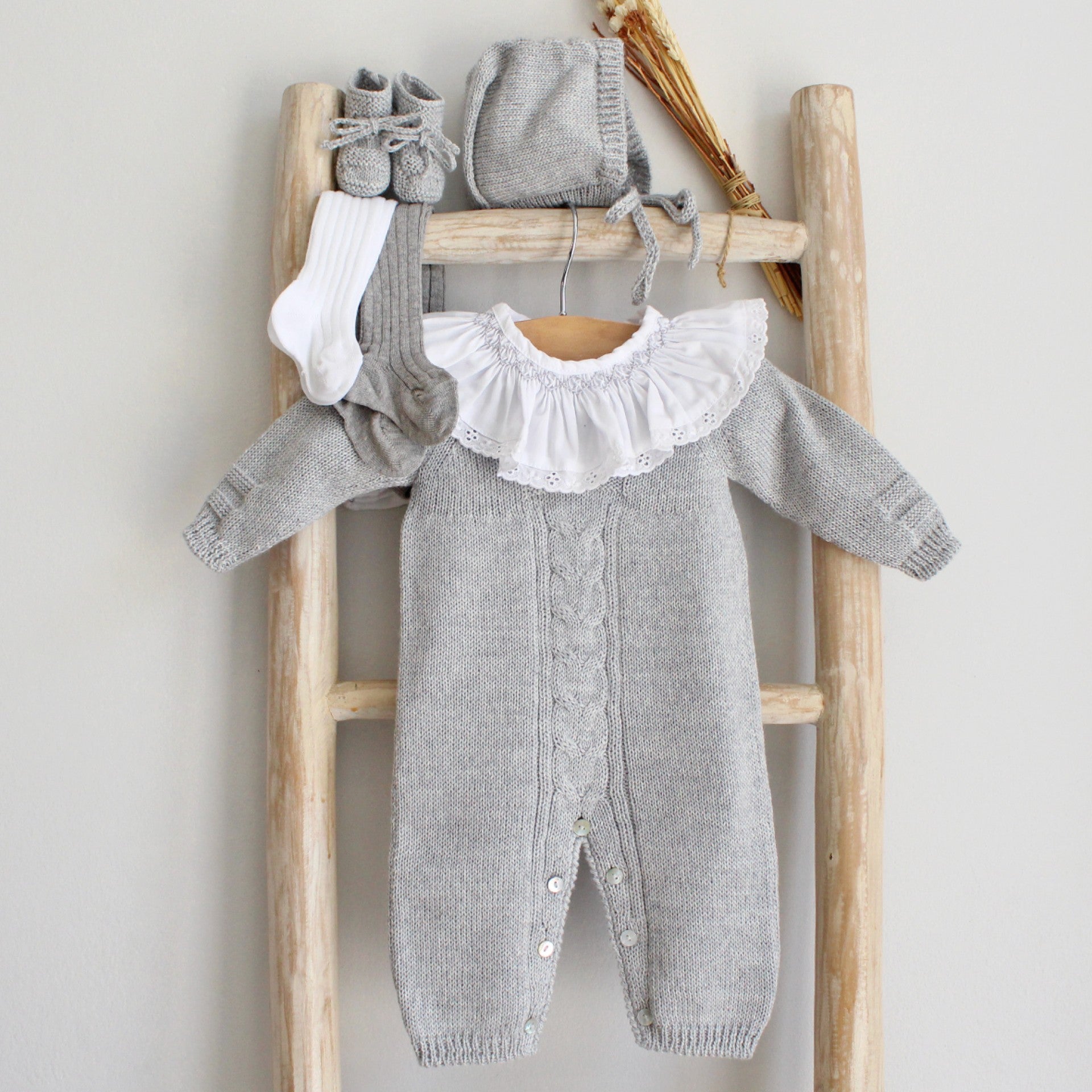 This luxurious long sleeve and legged romper is crafted from soft, high-quality Italian yarn, offering the perfect combination of warmth and comfort for your little one. Featuring beautiful cable detailing on the chest and delicate accents on the sleeves, it adds a refined touch to this timeless piece. Ideal for cooler days, it ensures your baby stays cozy and stylish. For a complete and special look, pair it with the matching bonnet and booties from the same collection. Add a shirt with a collar for an even more elegant ensemble. Made in Portugal