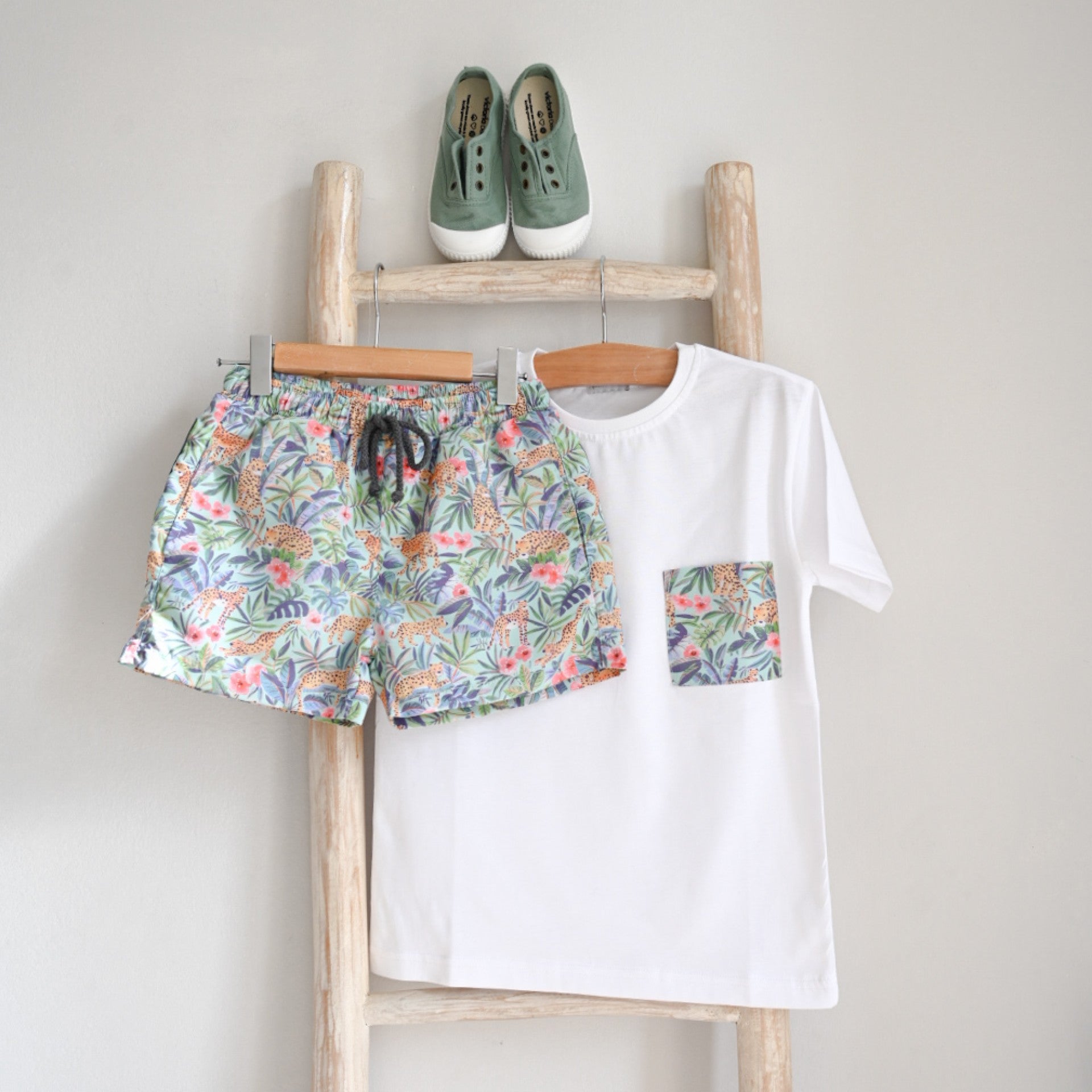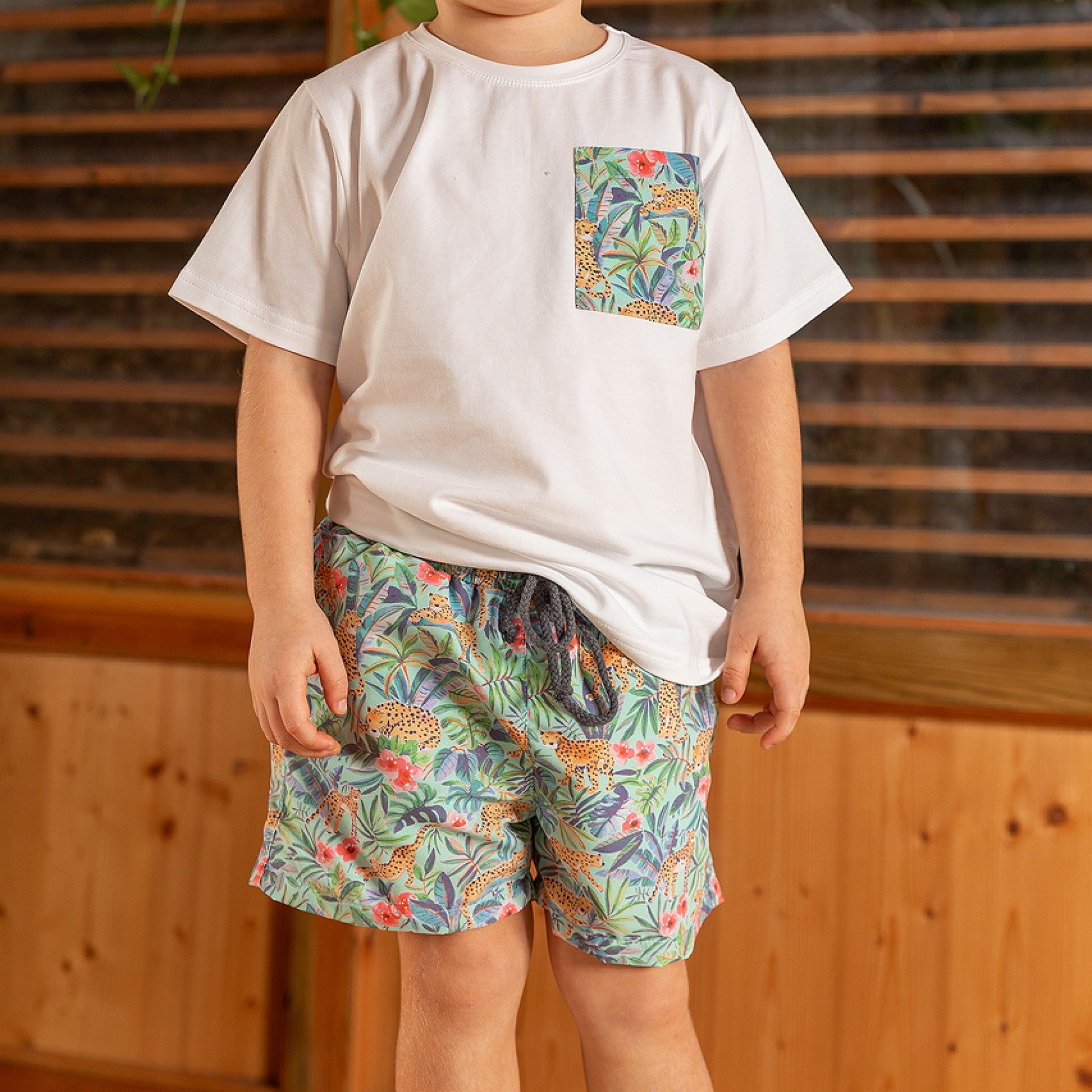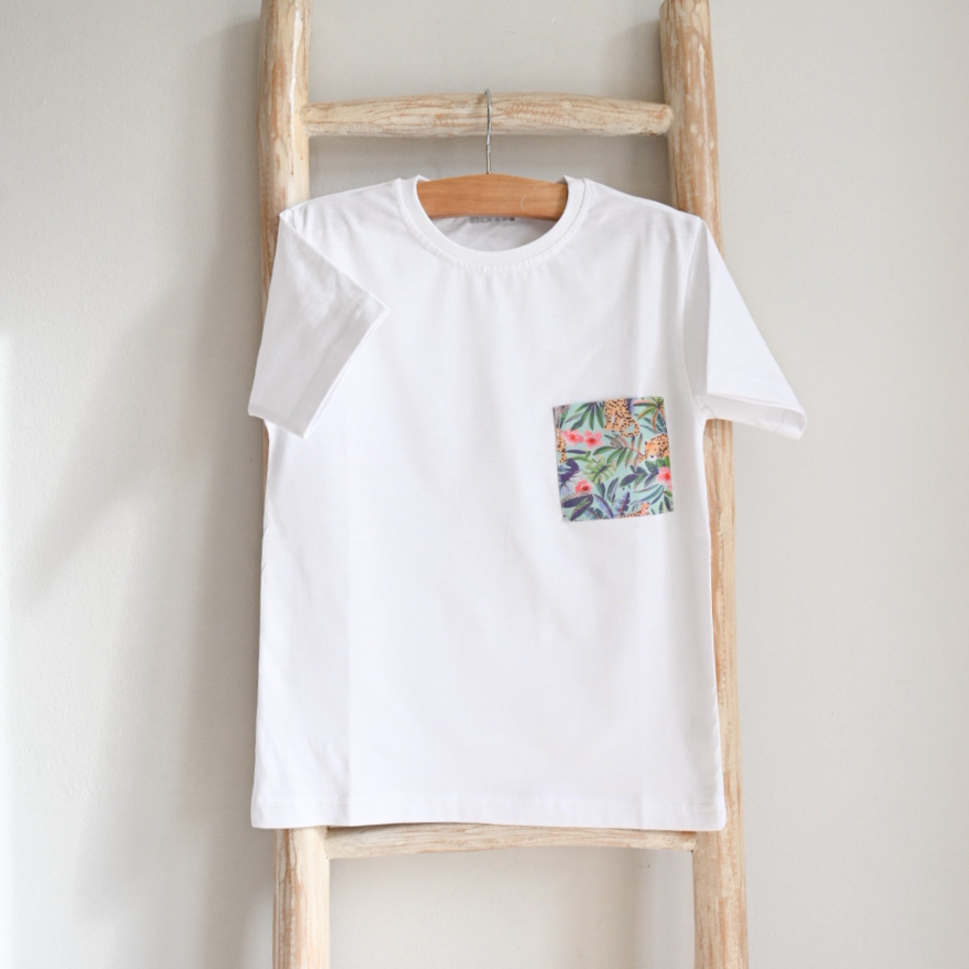 Soft and comfortable t-shirt featuring a pocket with a matching pattern to our swim shorts. The perfect summer essential for a coordinated and stylish look. Made in Portugal.