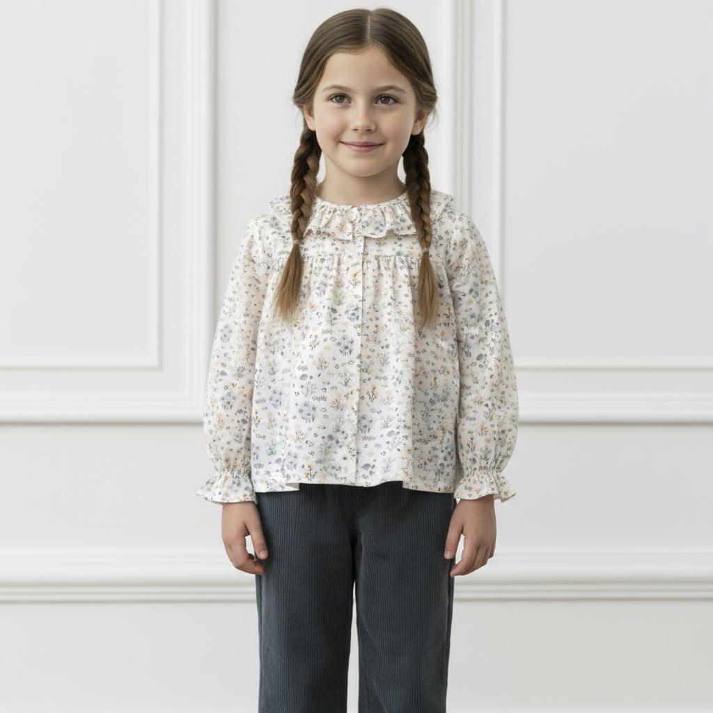 Girls Ruffled Collar Floral Tunic. 100% cotton