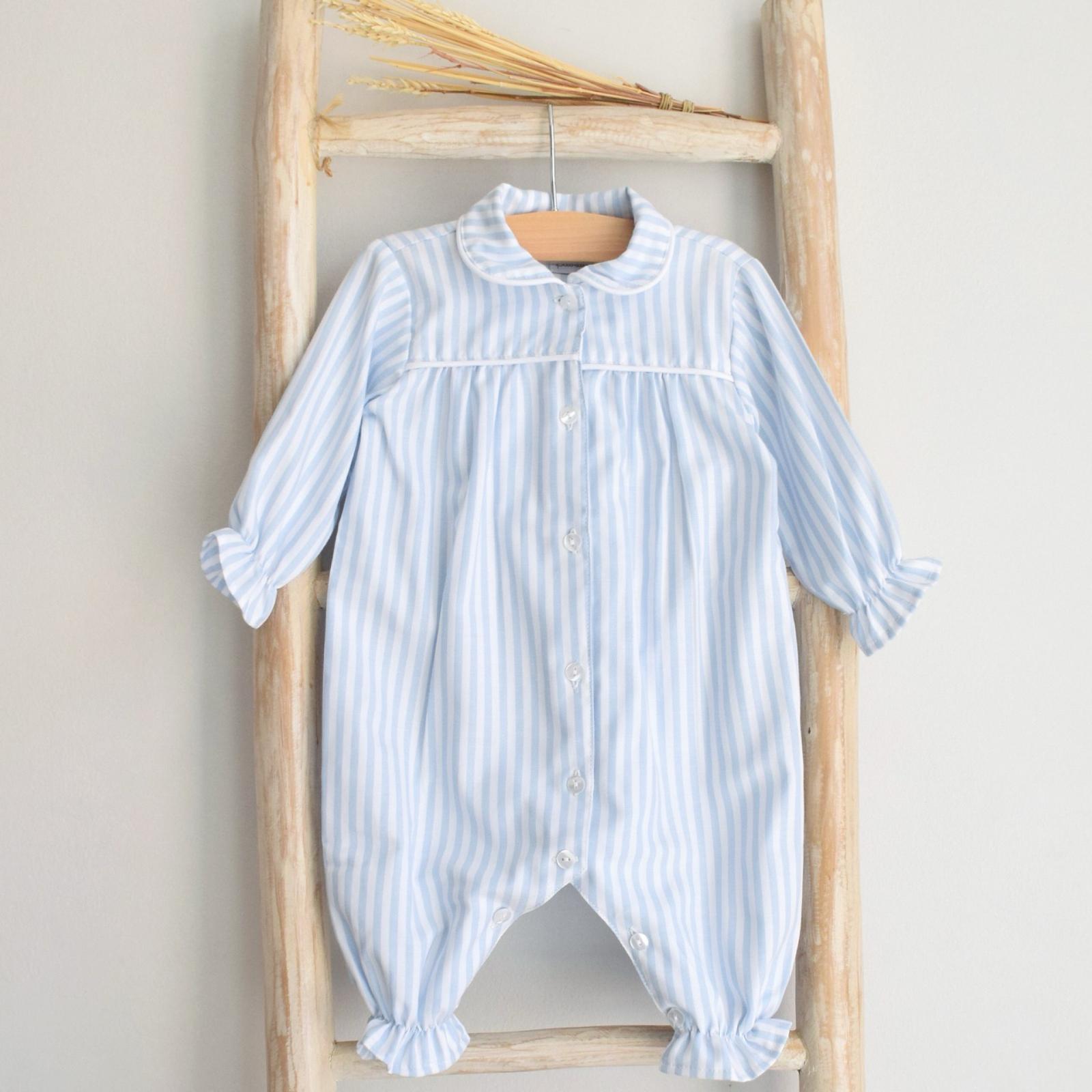 Blue Stripes Baby Pajama with Peter Pan Collar
