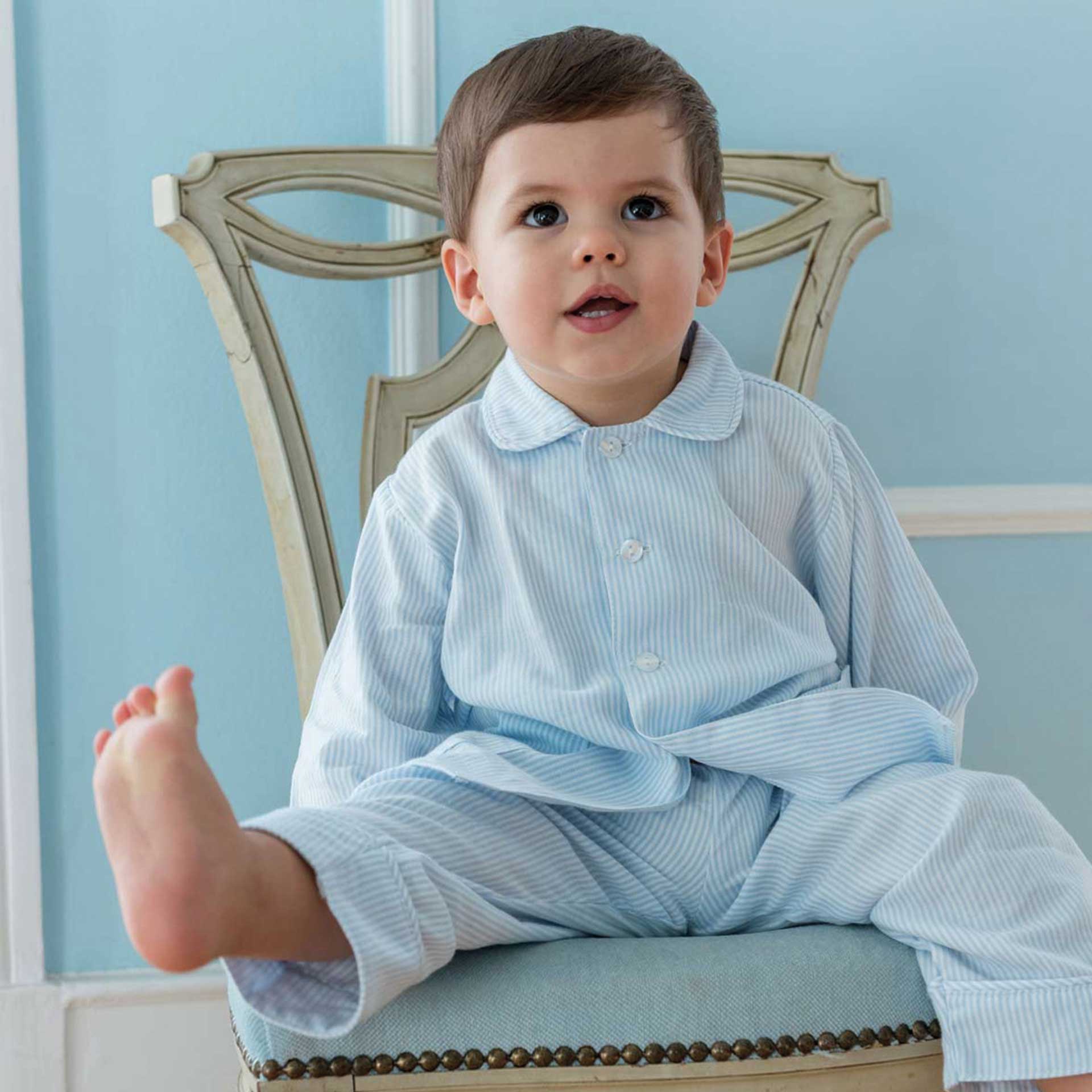 This classic-cut pajama set is designed for comfort and timeless style. Made from soft, cotton, it features long sleeves and long legs, perfect for a cozy night’s sleep. Available in a variety of patterns, this pajama combines practicality with charm, ensuring your little one sleeps in comfort and looks great doing so.