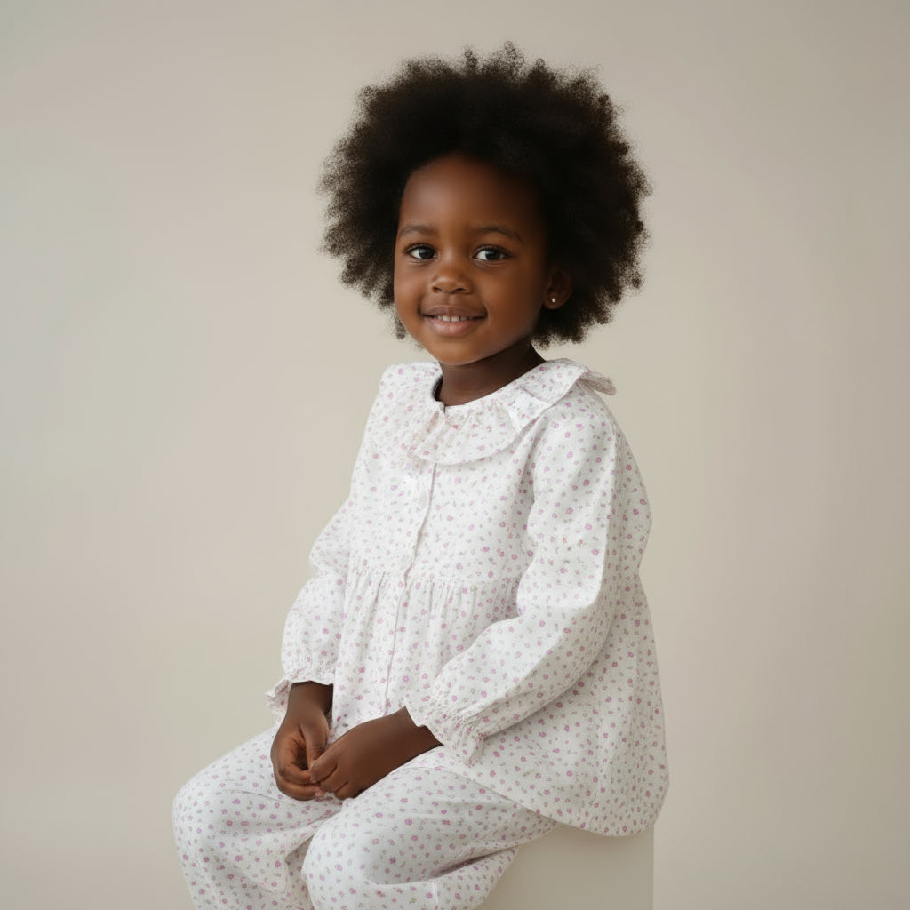 This charming pajama set features long sleeves and long legs, offering comfort and warmth for a cozy night’s sleep. Made with care in Portugal, this cotton pajama combines quality, comfort, and timeless charm, ensuring your little one sleeps in style.