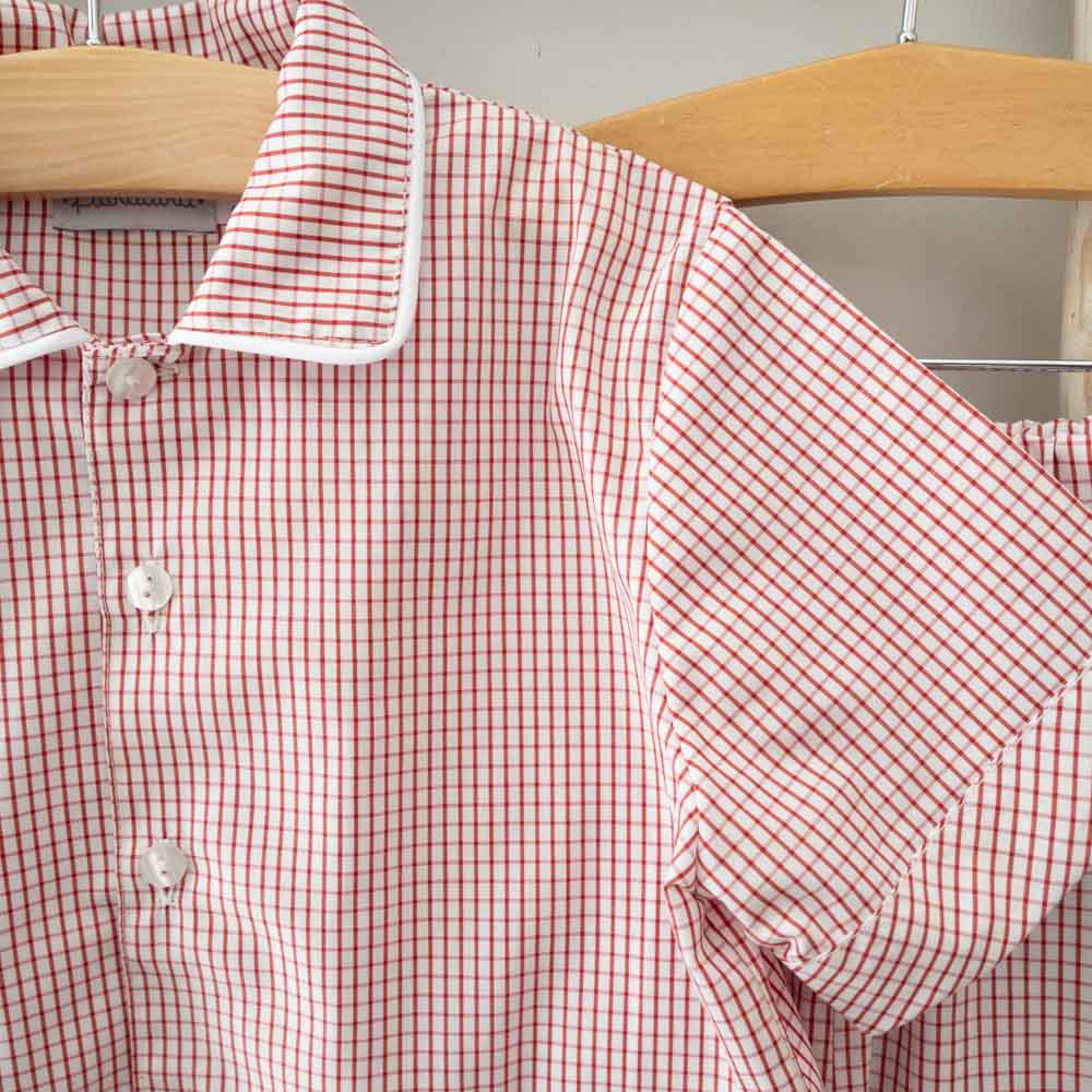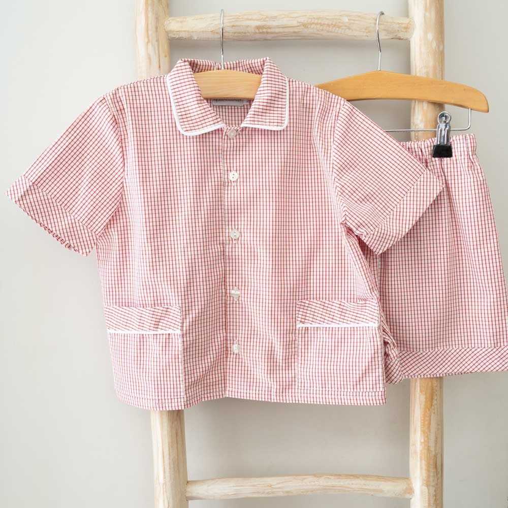 This classic-cut pajama set is designed for comfort and timeless style. Made from soft, cotton, it features short sleeves and shorts. Produced in a red Vichy pattern with white trims details. Made in Portugal