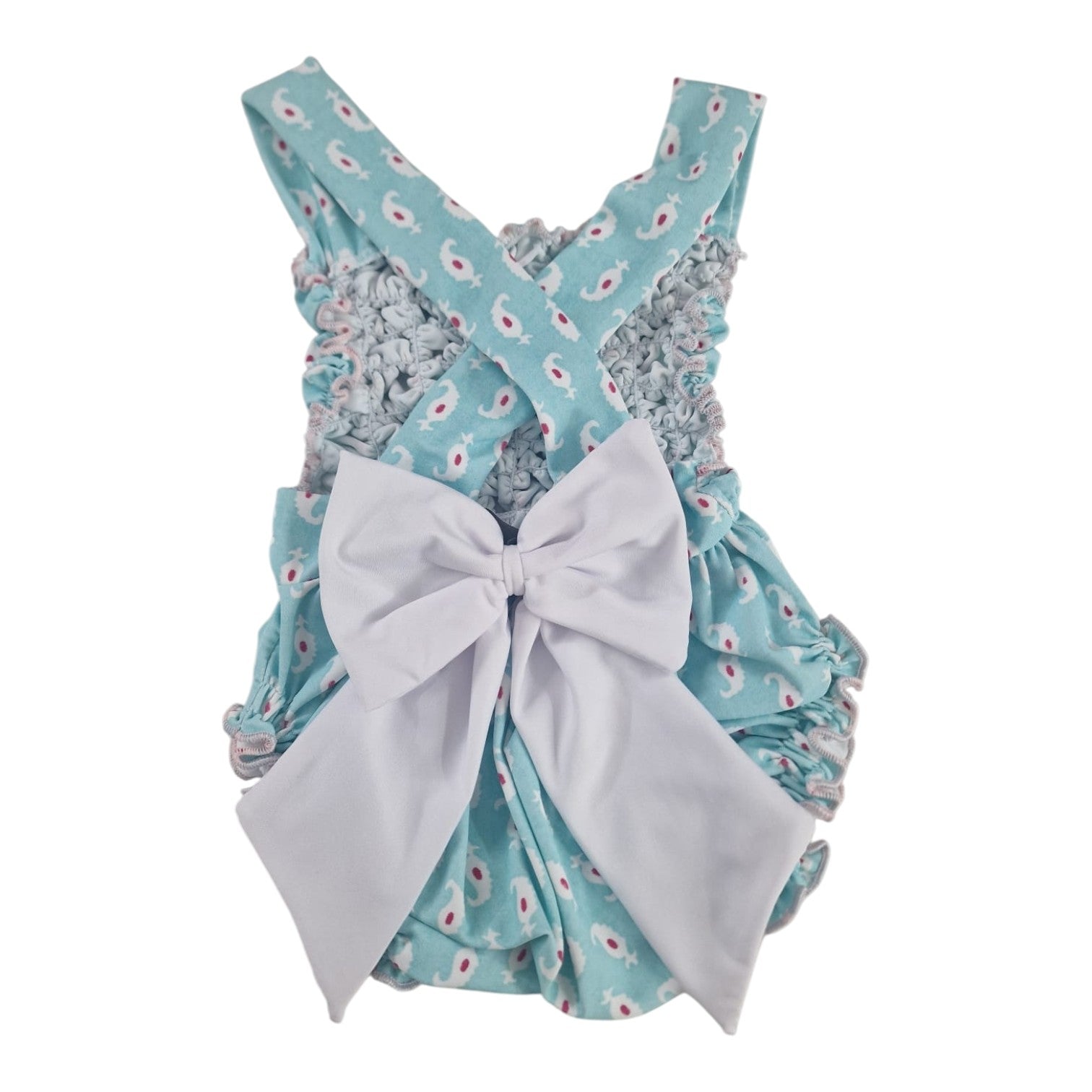 The "Frou Frou" baby lycra swimsuit is a timeless classic, blending the charm of a romper with the functionality of a swimsuit. Featuring elasticated details, crossed straps, and a bow at the back, it's as cute as it is practical. Available in a variety of delightful patterns