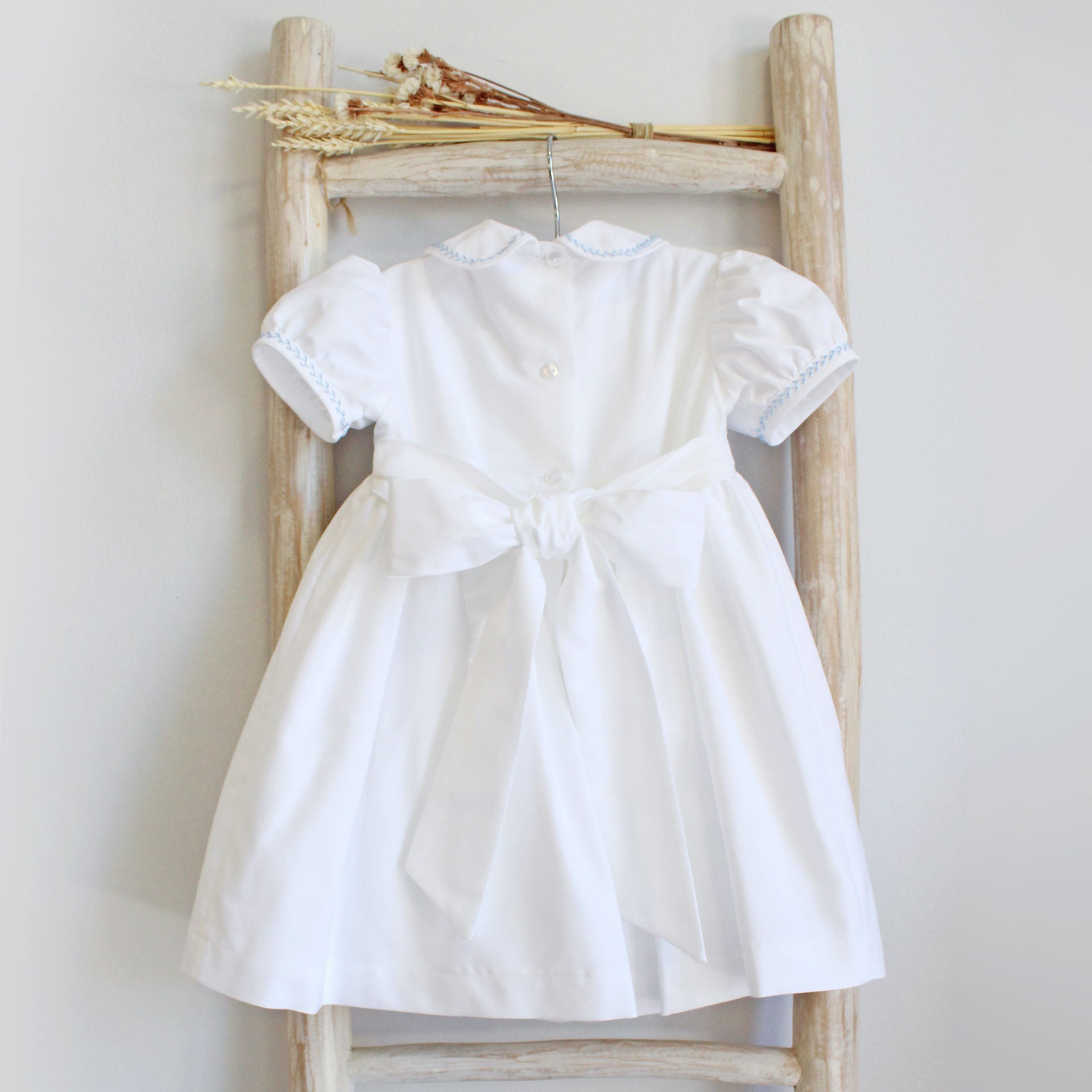 This sweet dress features a classic Peter Pan collar, with delicate embroidery on the chest, collar, and sleeve cuffs. Fully lined for a smooth fit, this dress is perfect for any special occasion, offering a timeless style that will make your little one stand out. Designed and crafted in Portugal, it combines beauty, quality, and attention to detail.