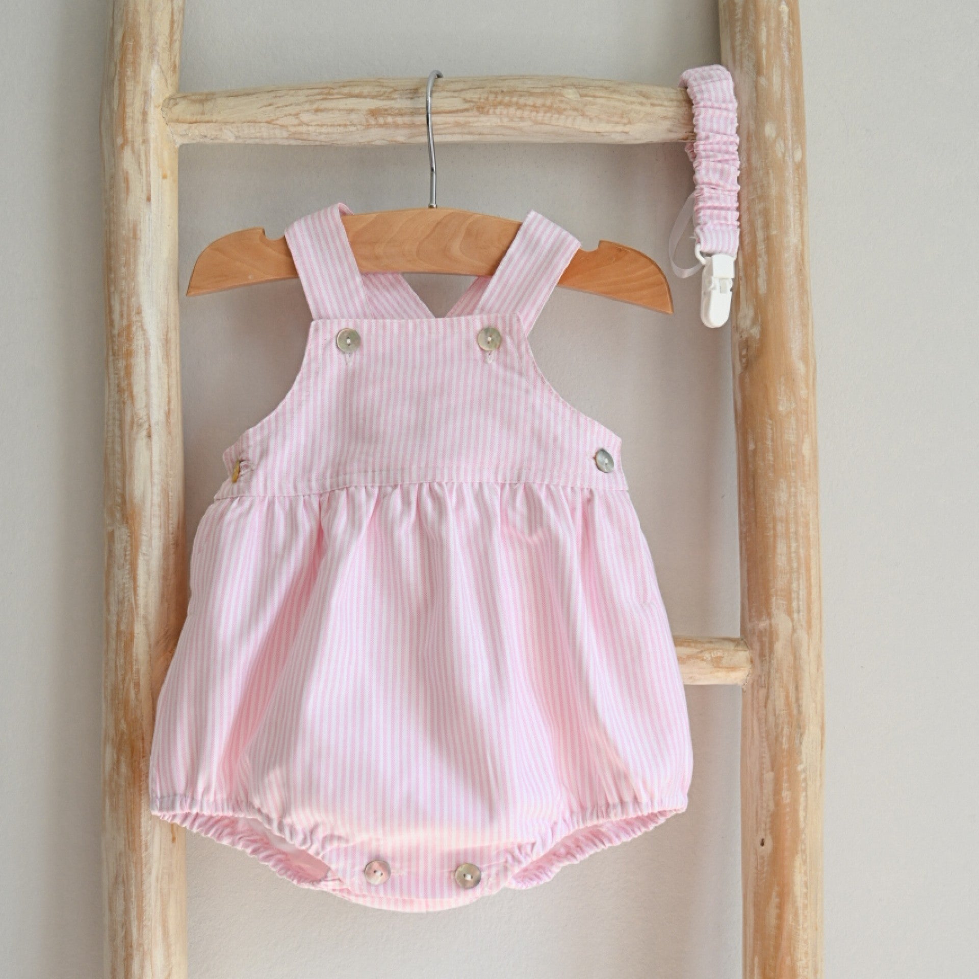 This adorable romper features adjustable straps, making it a super versatile piece that can be styled for any season. Its simple yet timeless design allows for easy layering, making it ideal for year-round wear. Whether worn with a cardigan and tights in colder months or on its own in warmer weather, it’s a perfect addition to your baby´s wardrobe. Made in cotton and fully lined. Produced in Portugal