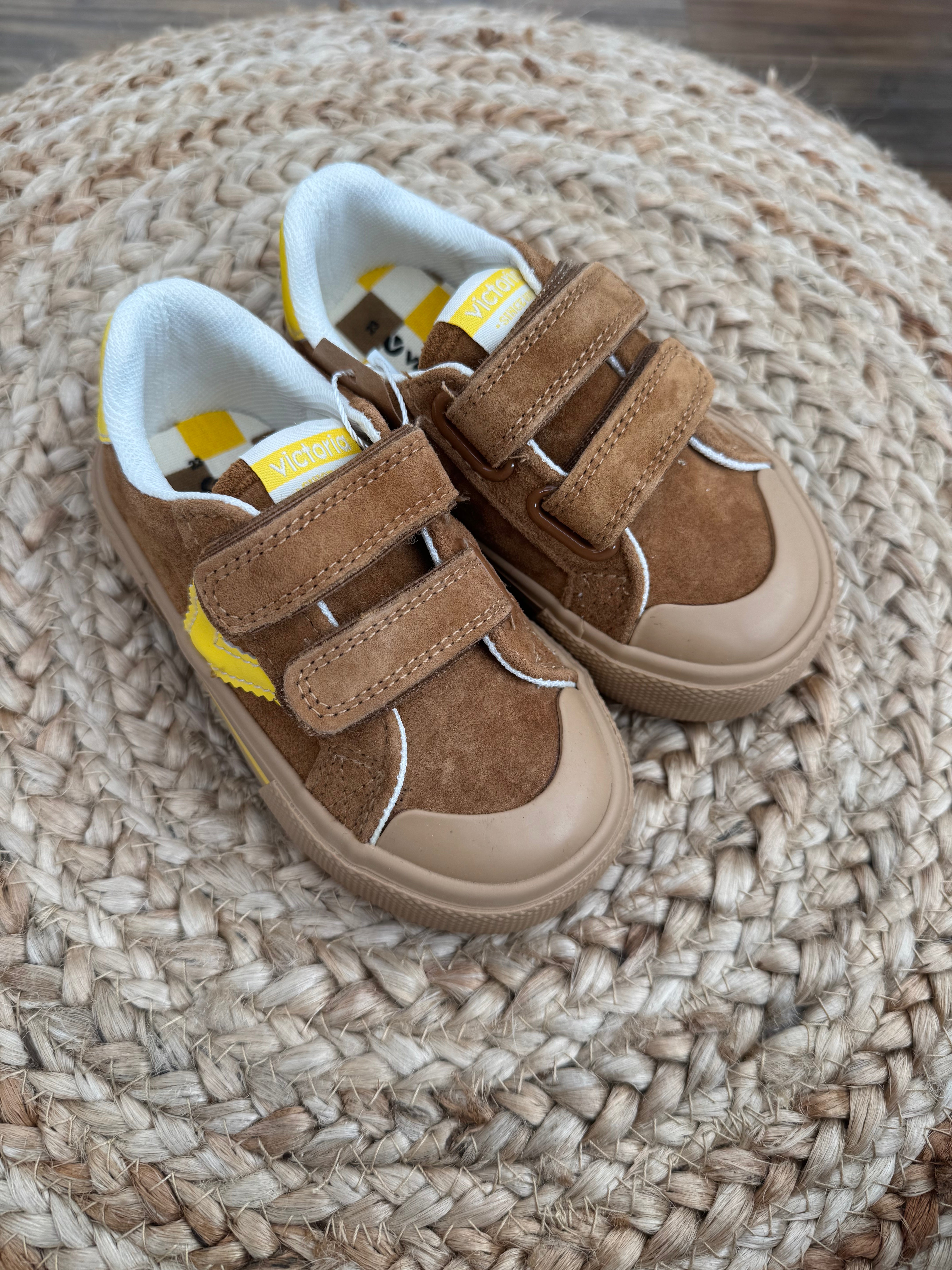 Kids' trainers with victoria V on the side. Two straps for better support and to make them easy to get them on and off. Rubber reinforcement on the toe to make them more hard-wearing and long-lasting. High density gingham patterned insole for extra comfort.